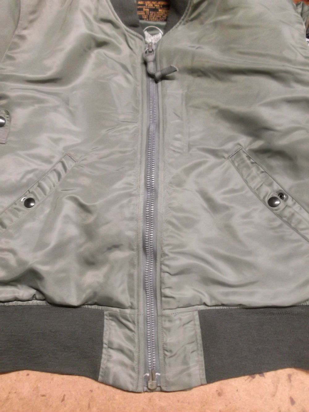 1枚目は鹿児島県からの郵送のお客さんのフロントファスナーを交換していく前のMA-1フライトジャケットです。