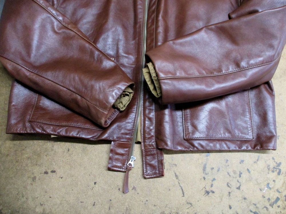 10枚目はA-2フライトジャケットの両袖と腰回りのリブニットを外した後の写真です。