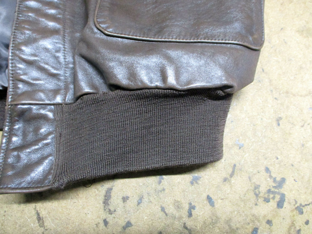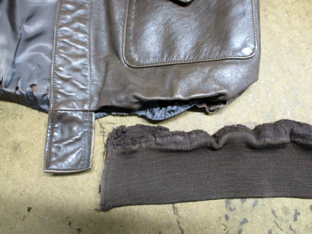 A-2フライトジャケットのリブニットを新しいものに交換していきます。…