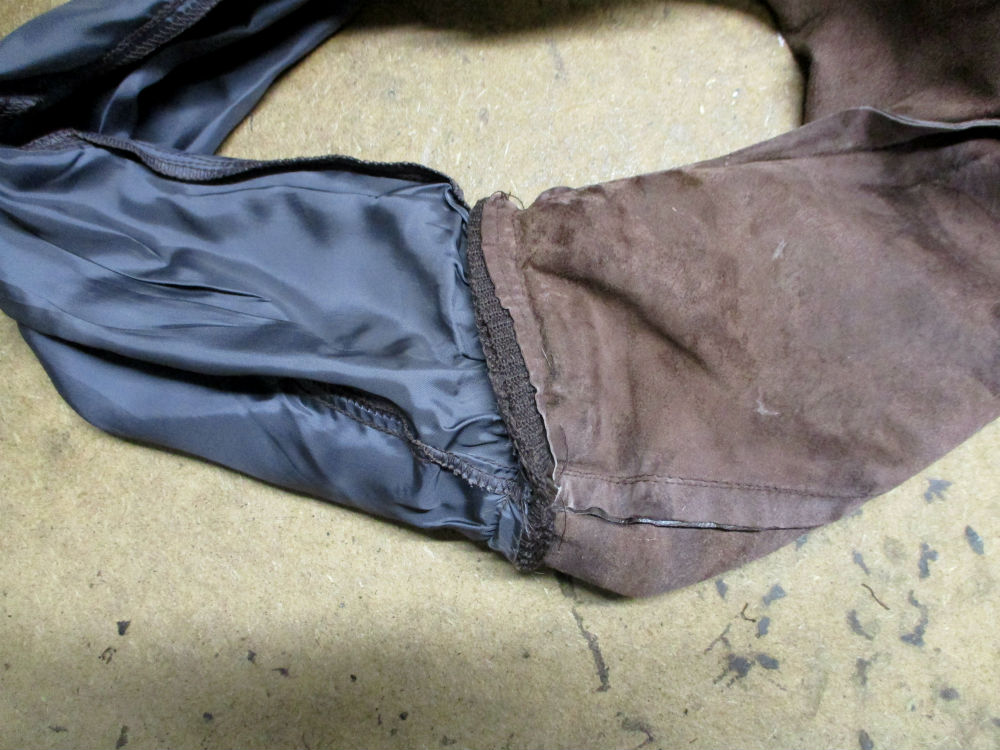 A-2の両袖と腰回りのリブニットと裏地の交換
