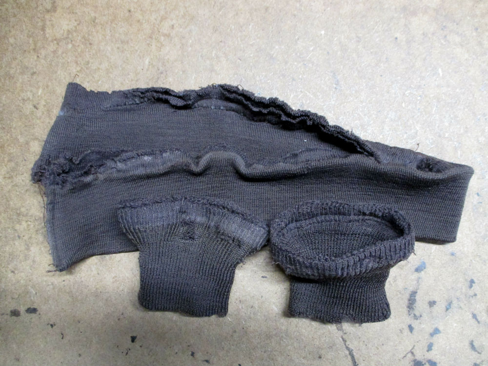 4枚目は取り外していく前の両袖と腰回りのリブニットの写真です。