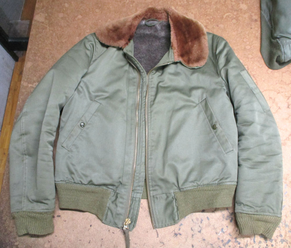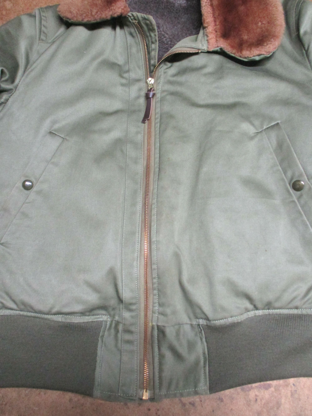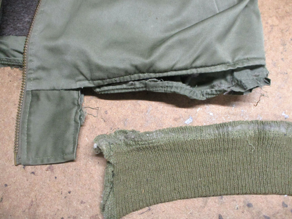 1枚目は神奈川県からの郵送のお客さんのジッパーと両袖と腰回りのリブニットを交換していくB-15フライトジャケットです。