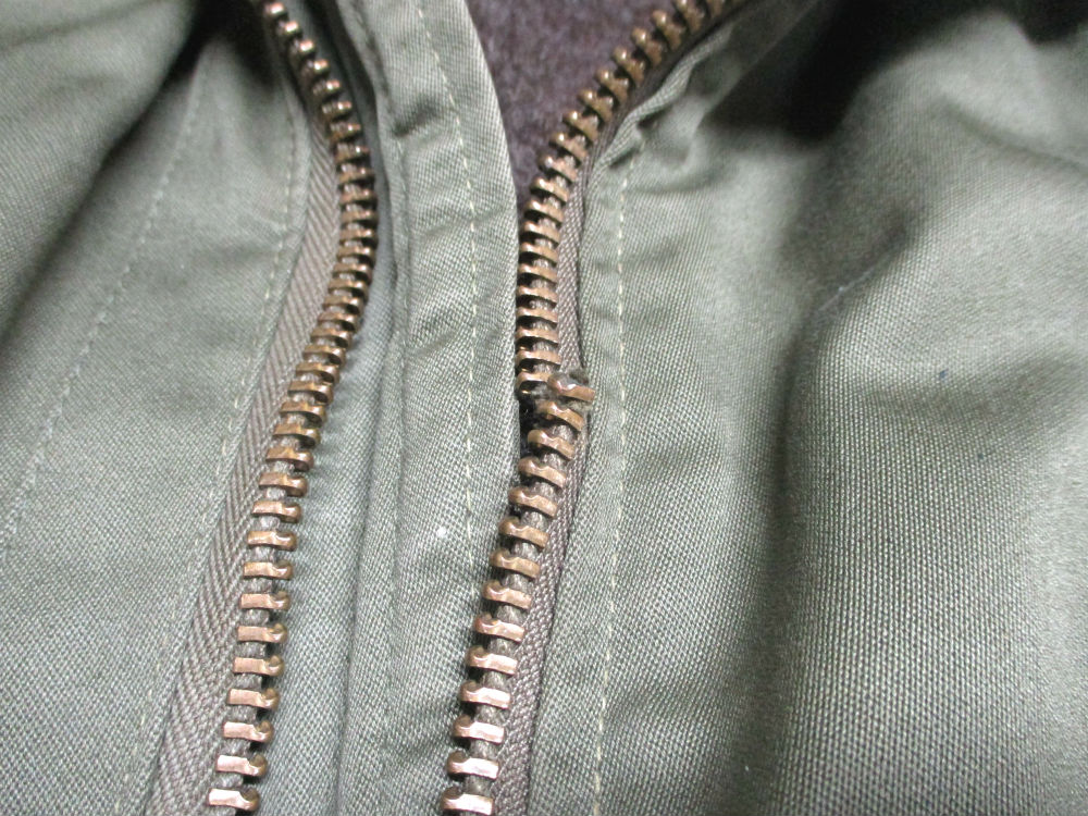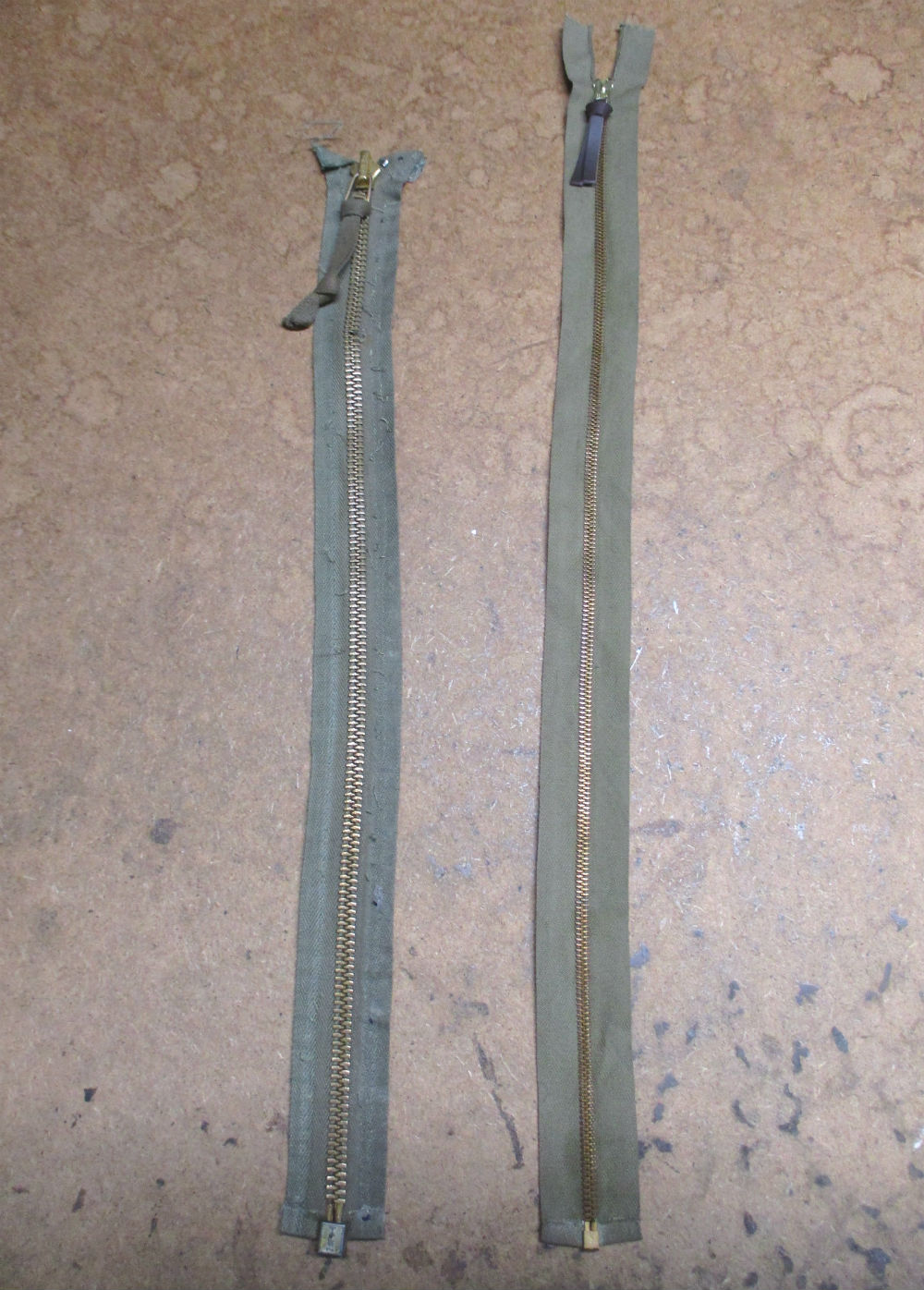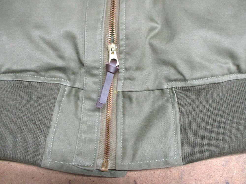 B-15フライトジャケットのジッパーと両袖と腰回りのリブニットを新しいものに交換していきます。