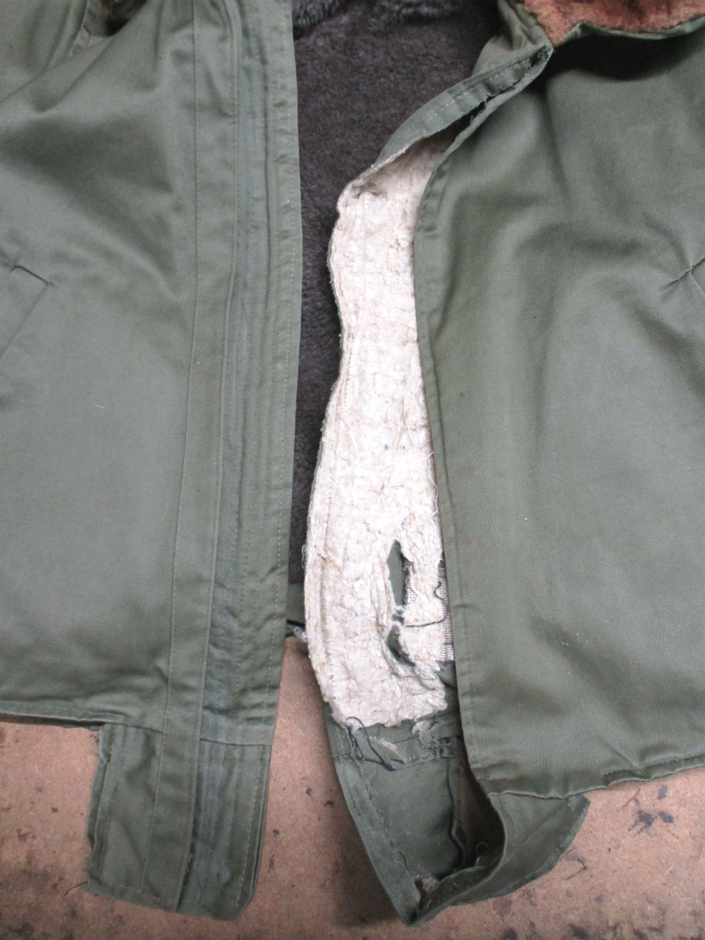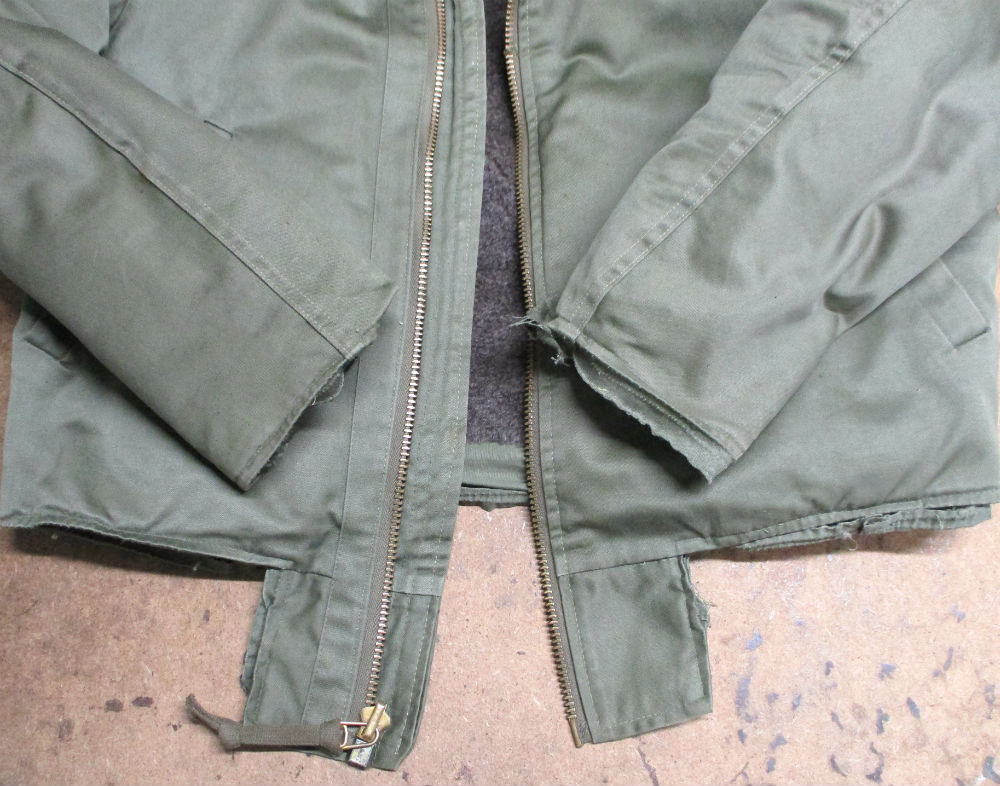 13枚目はB-15フライトジャケットから両袖と腰回りのリブニットを取り外した後の写真です。