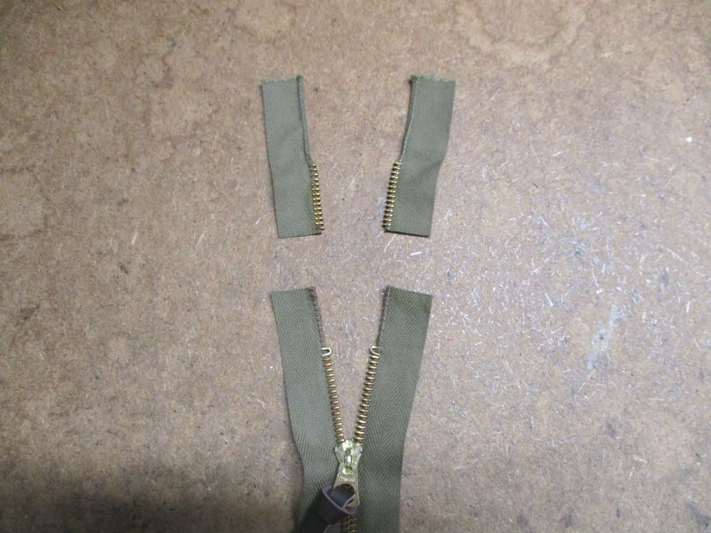 16枚目は新しいジッパーと長さが違いますので取り外したジッパーの長さに合わせて短くしていきます。