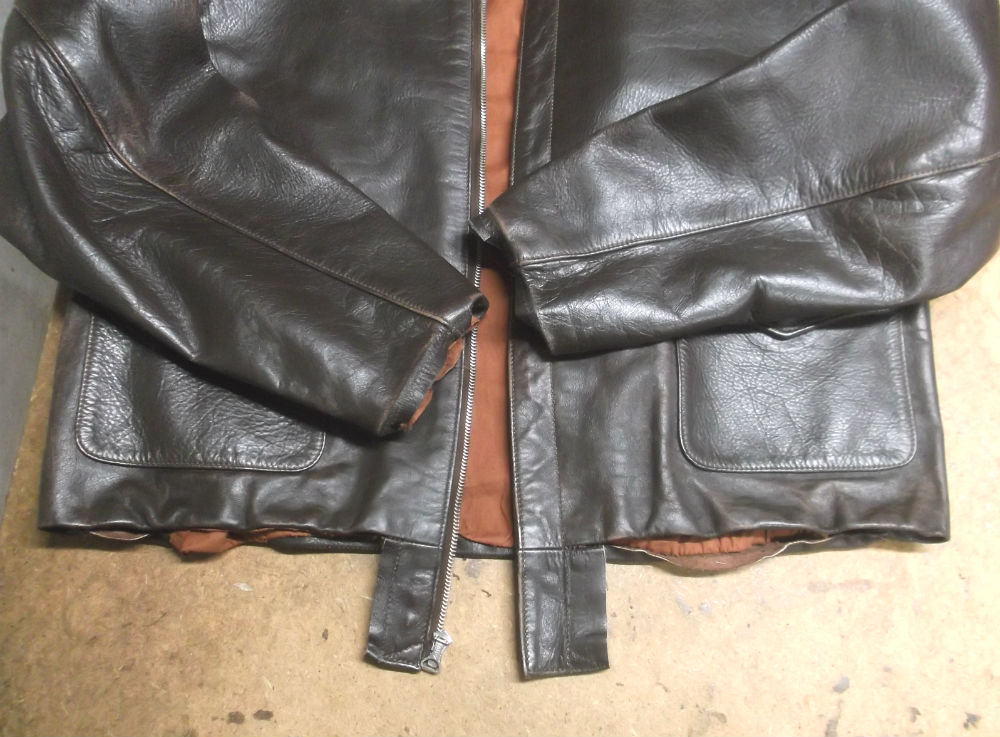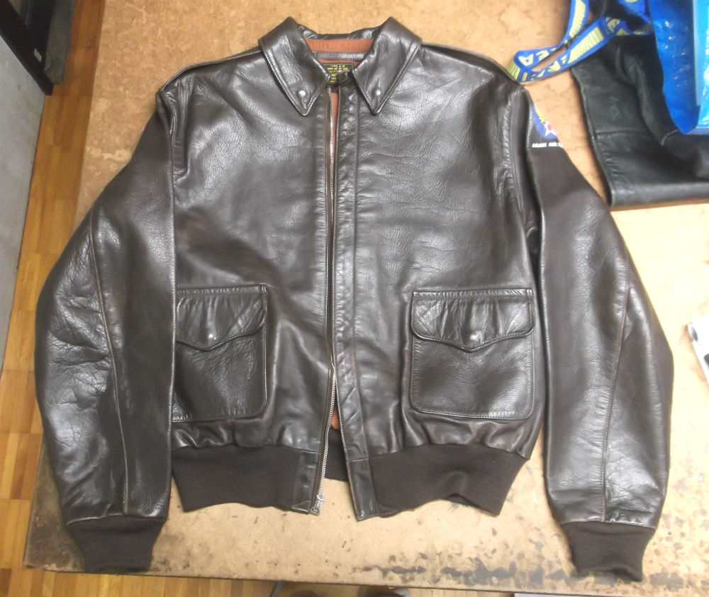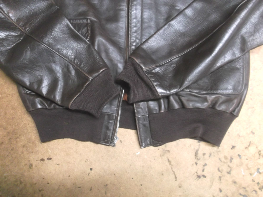 1枚目は東京都からの郵送のお客さんの両袖と腰回りのリブニットを交換していく前のA-2フライトジャケットです。