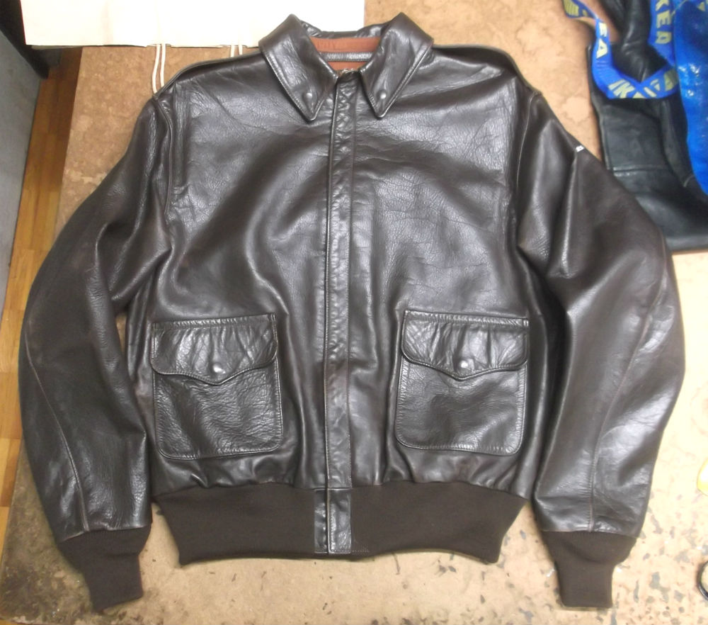 両袖と腰回りのリブニットが所々破れだしたA-2フライトジャケットを新しいものに交換していきます。