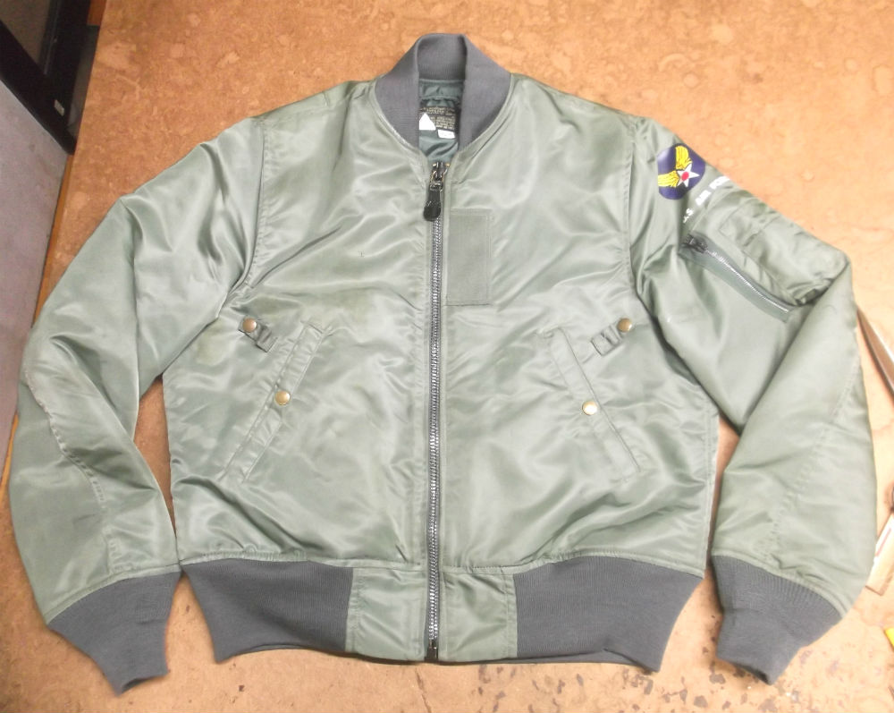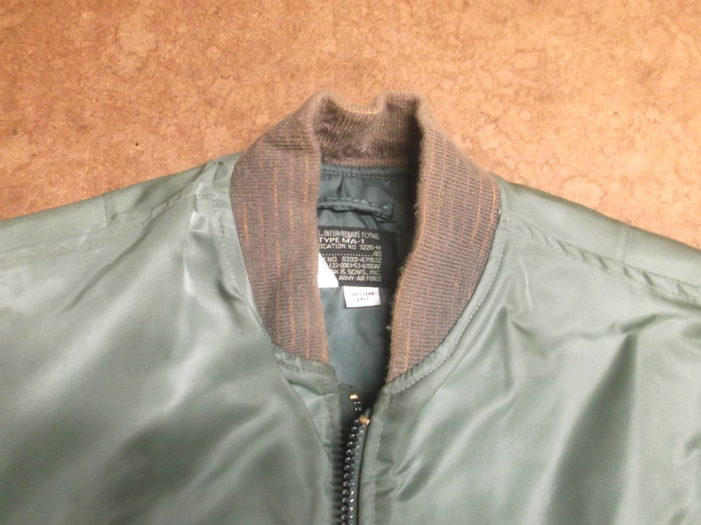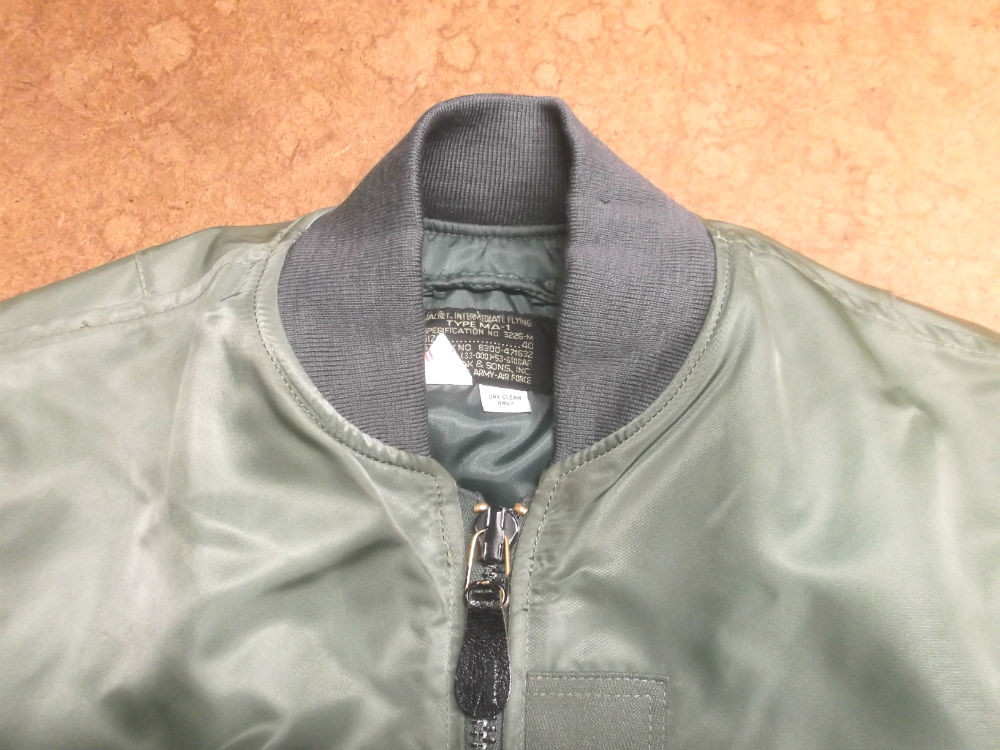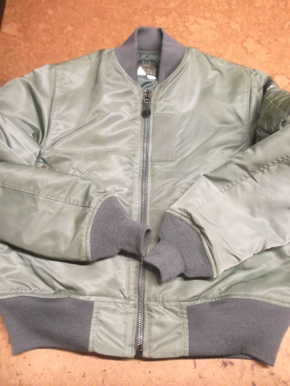 1枚目は愛知県からの郵送のお客さんの襟、両袖、腰回りを交換していく前のMA-1フライトジャケットです。