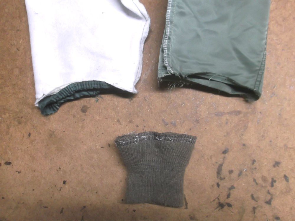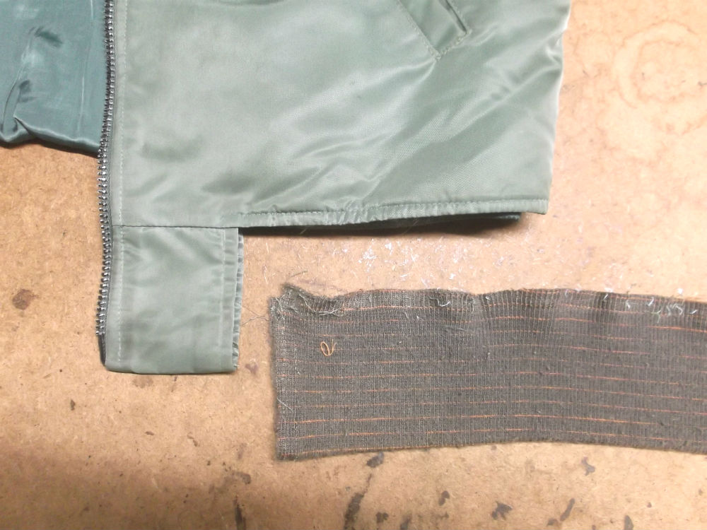 伸びてしまったMA-1フライトジャケットのリブニットを新しいものに交換していきます。
