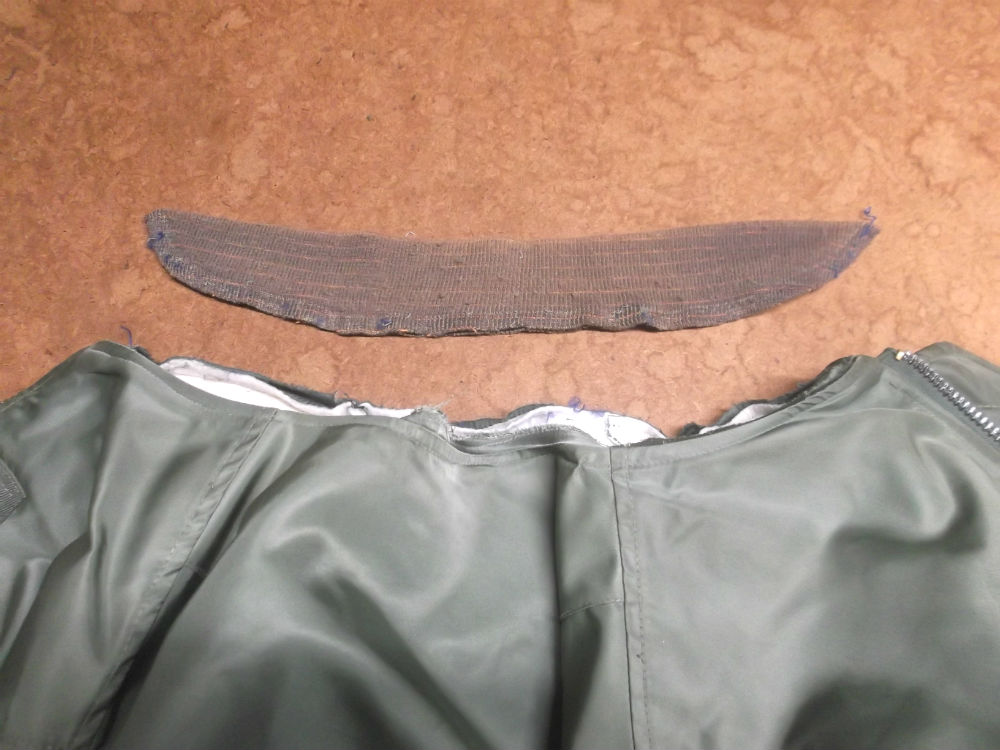 11枚目はMA-1フライトジャケットの襟、両袖、腰回りのリブニットを取り外した写真です。