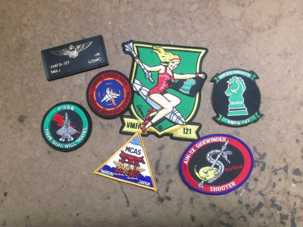 G-1フライトジャケットにお客さんの気に入ったワッペンを取り付けていきます。