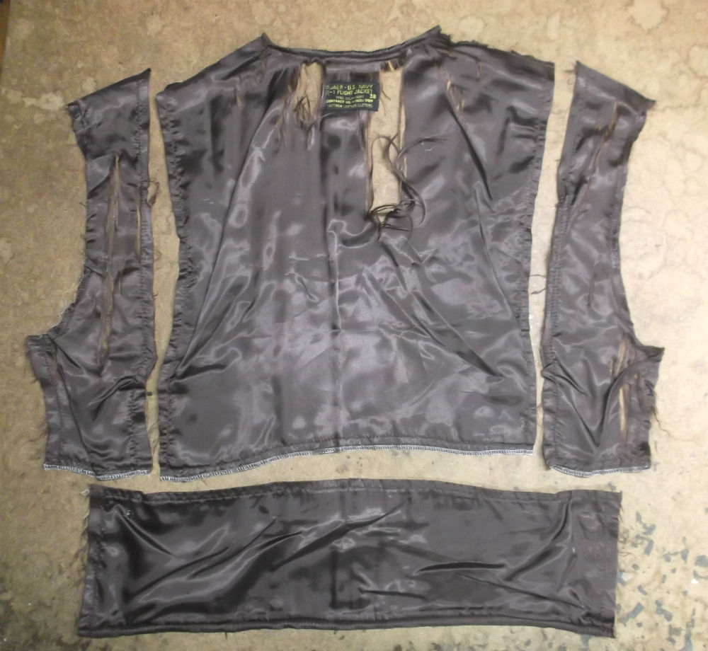 26枚目はG-1フライトジャケットに新しい裏地の生地を取り付けた後です。