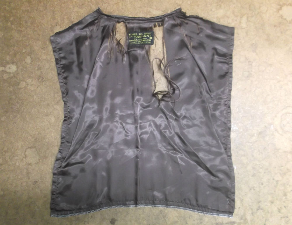 4枚目はG-1フライトhジャケットから裏地の生地を取り外した写真です。