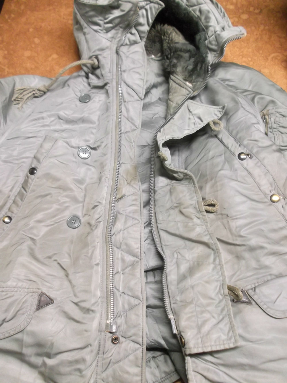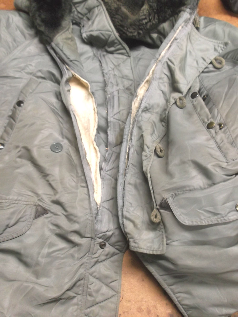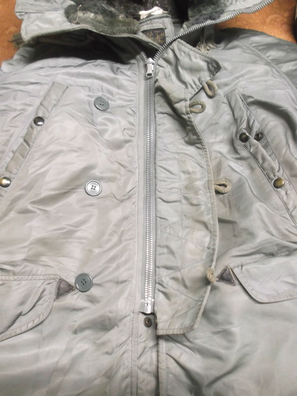 ジッパーの壊れたN-3Bフライトジャケットを新しいものに交換していきます。