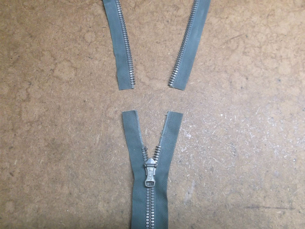 6枚目は新しいジッパーと元のジッパーの長さが違いますので同じ長さに合わせていきます。