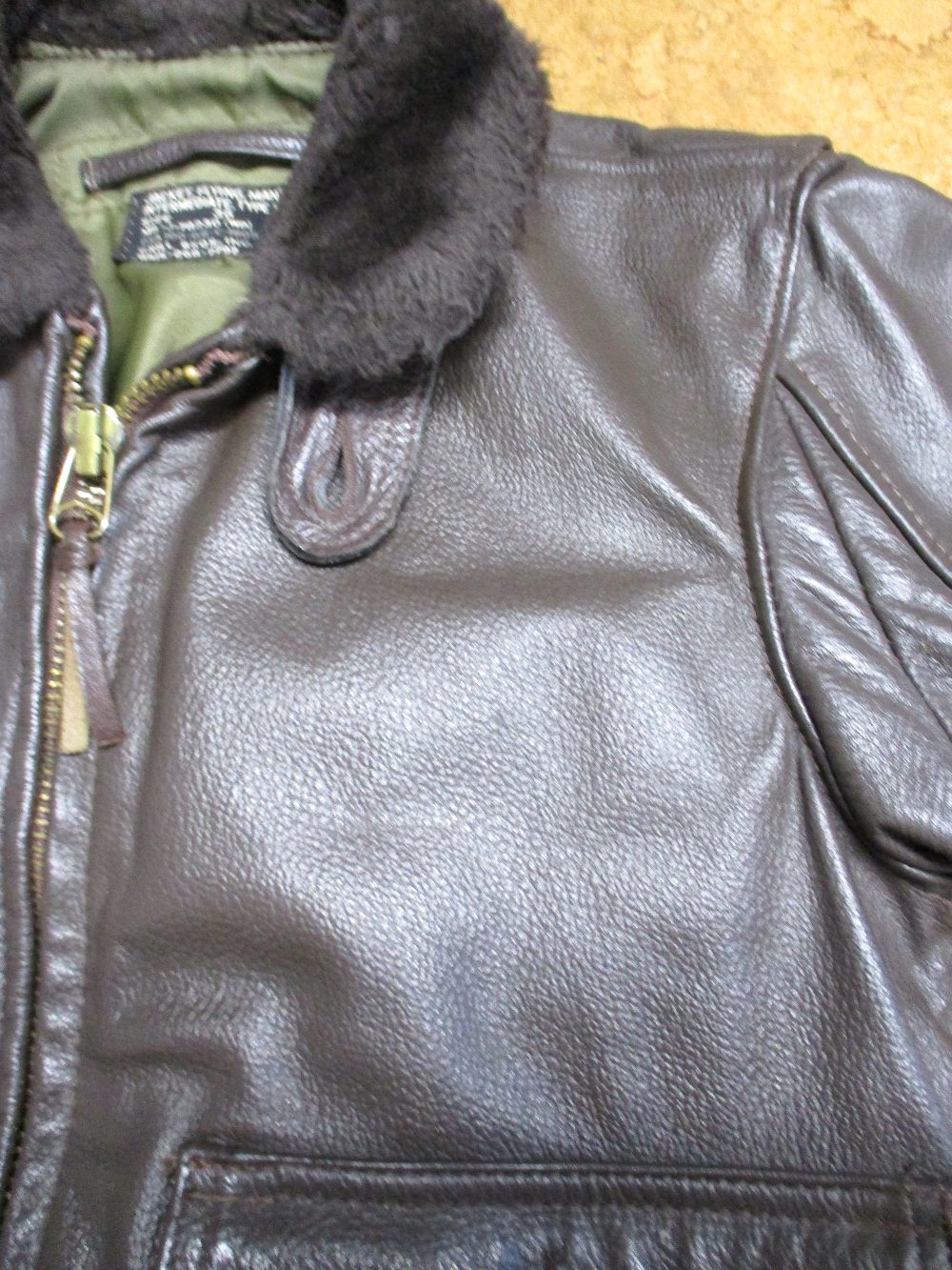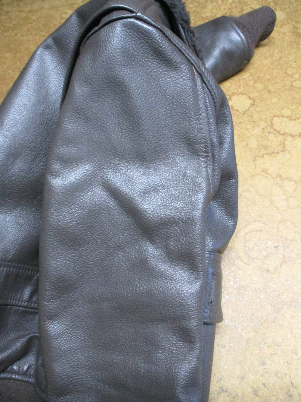 1枚目は埼玉県からの郵送のお客さんのワッペンを指定の位置に取り付けて両袖と腰回りを交換していくG-1フライトジャケットです。