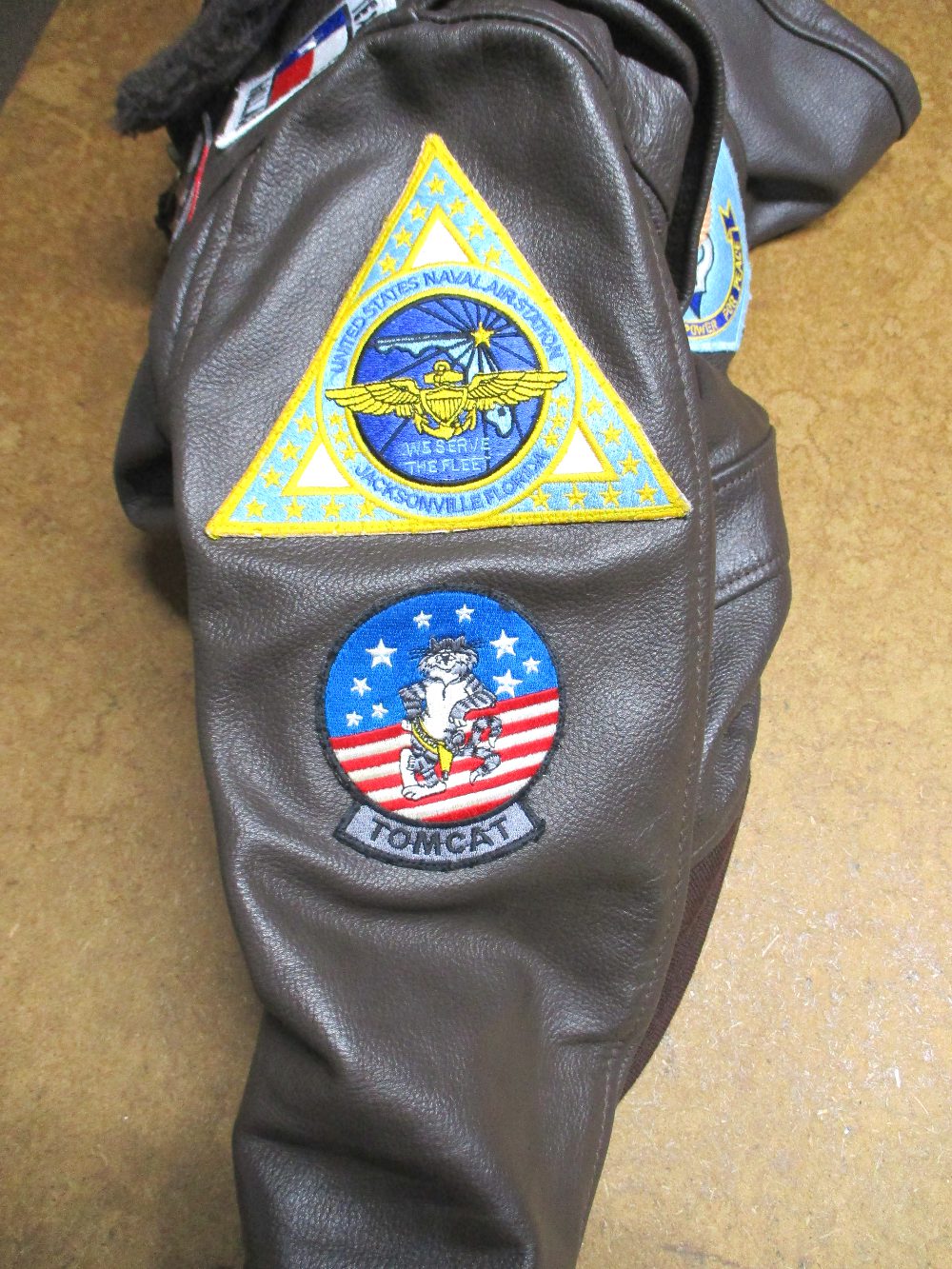 G-1フライトジャケットに映画トップガンのワッペンと両袖と腰回りに新しいリブニットに交換していきます。