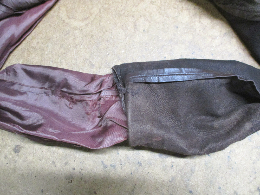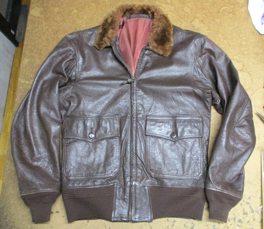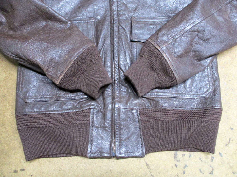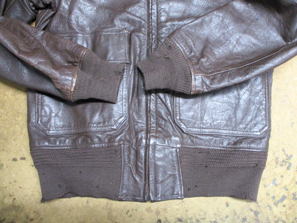 1枚目は愛媛県からの郵送のお客さんの両袖と腰回りのリブニットを交換していく前のG-1フライトジャケットです。