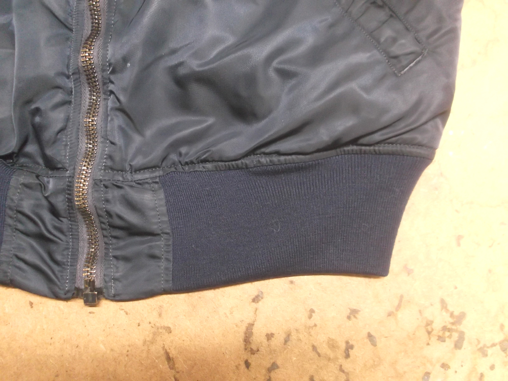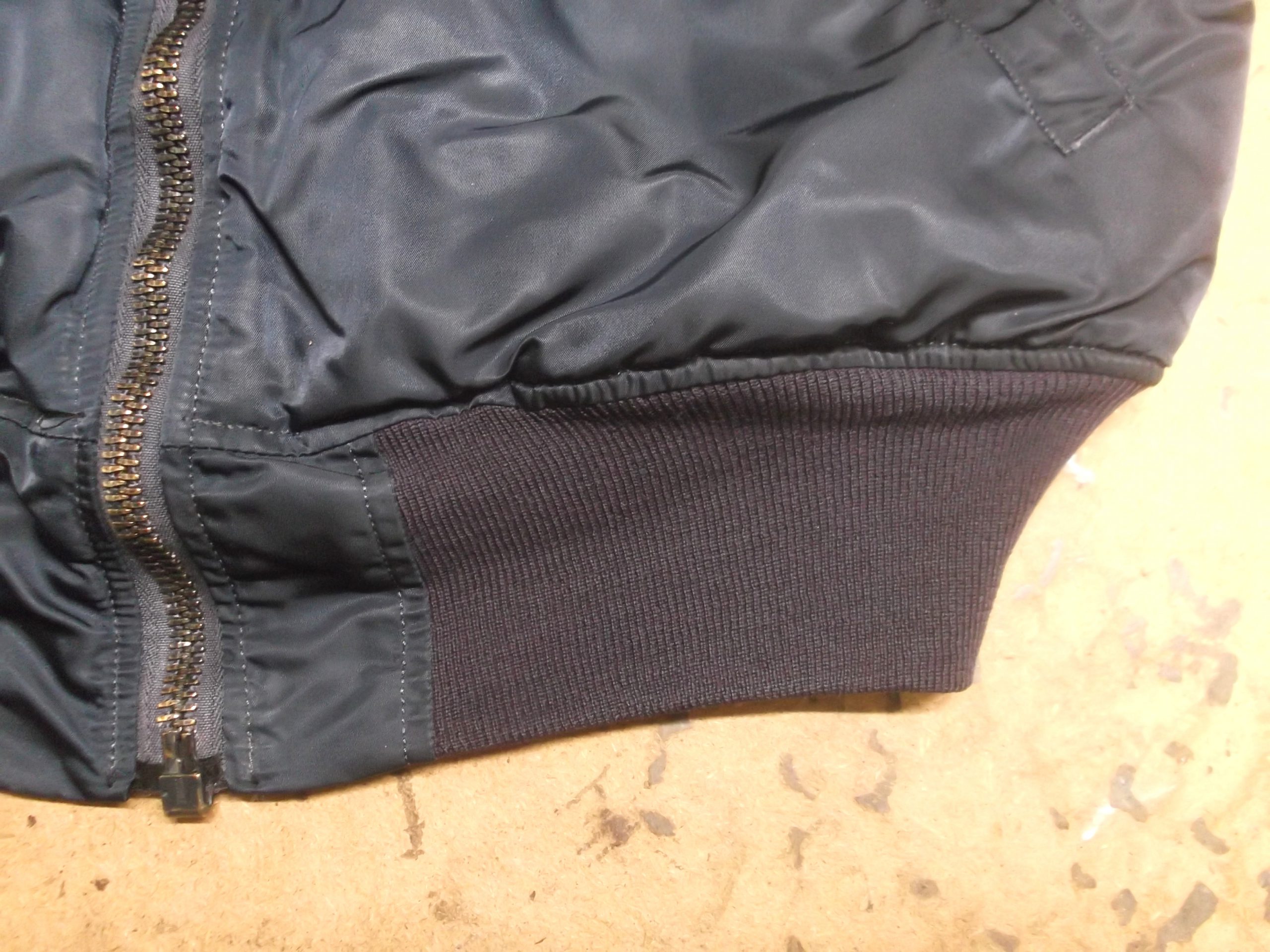 B-15フライトジャケットの両袖と腰回りの破れだしたリブニットを新しいものに交換していきます。