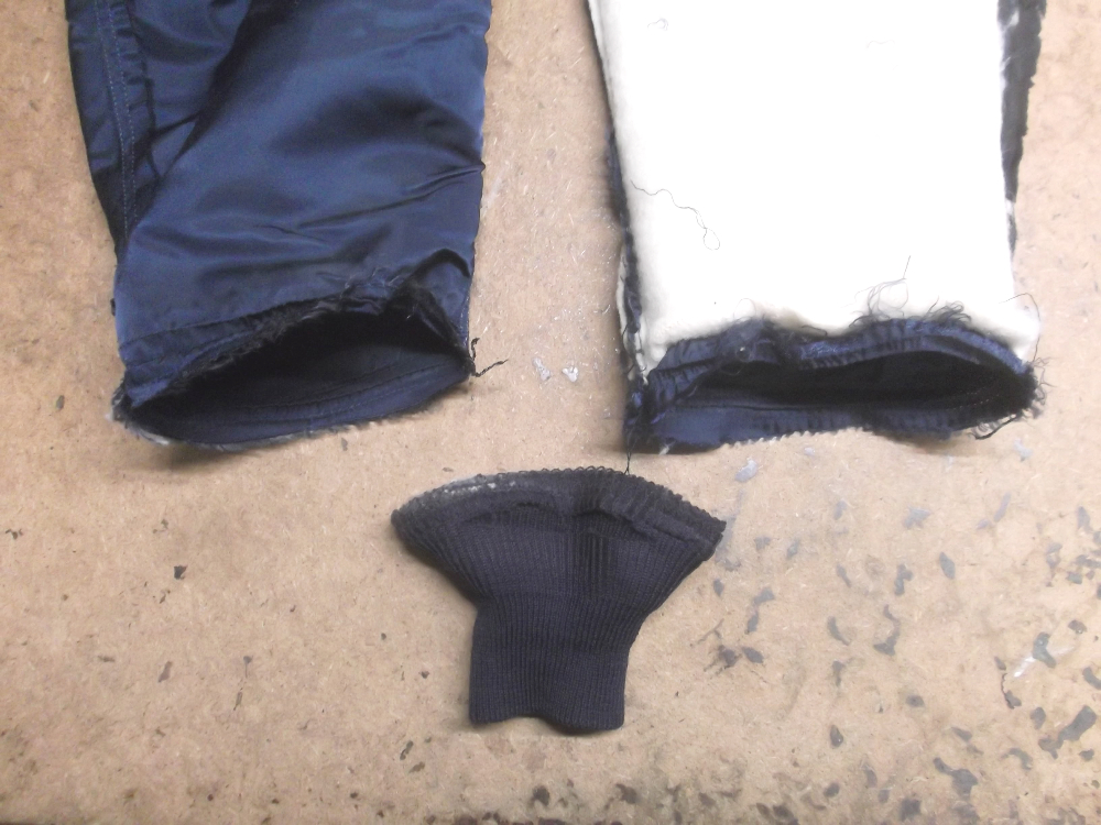 9枚目はB-15フライトジャケットから両袖と腰回りのリブニットを取り外した写真です。
