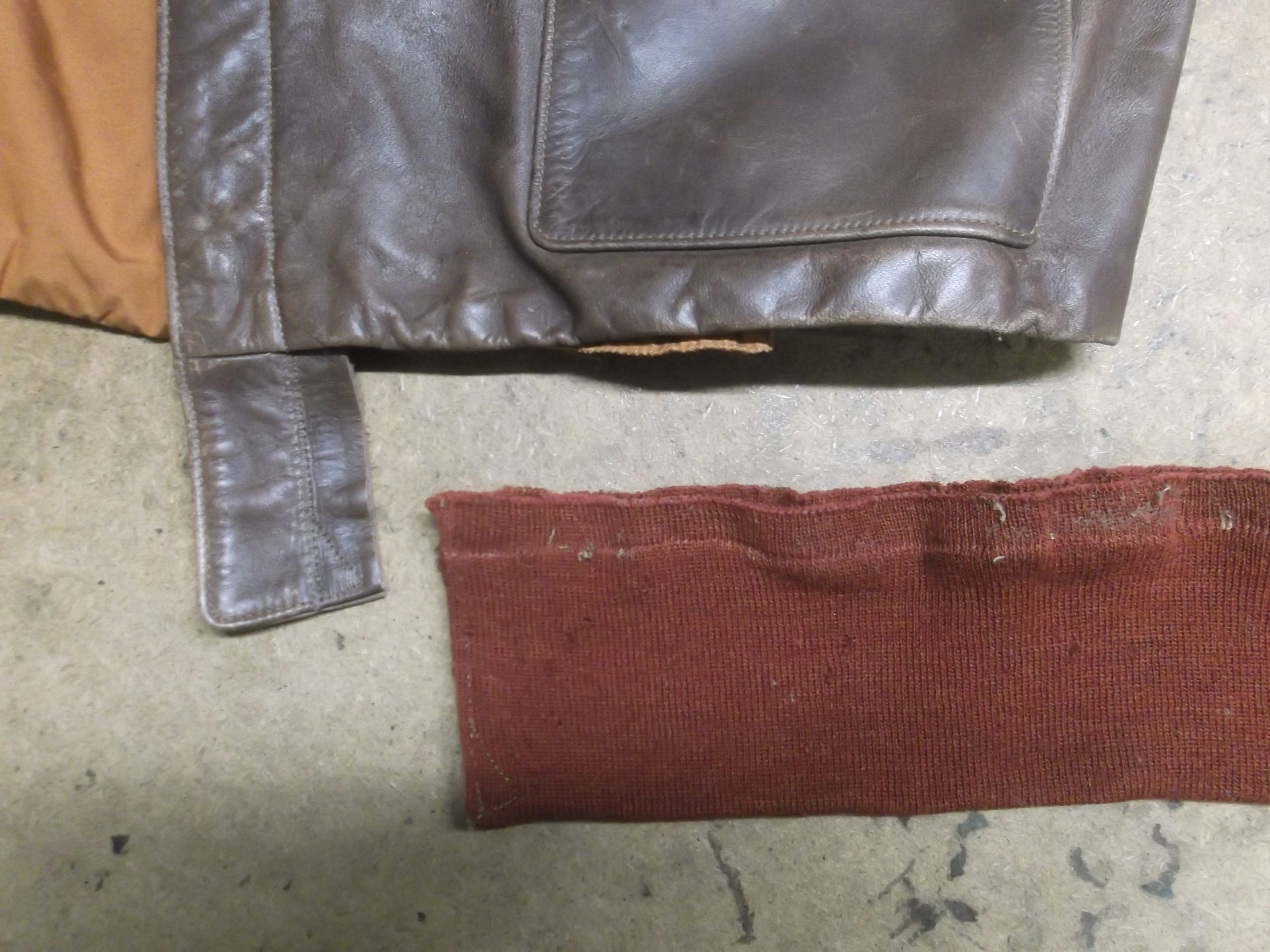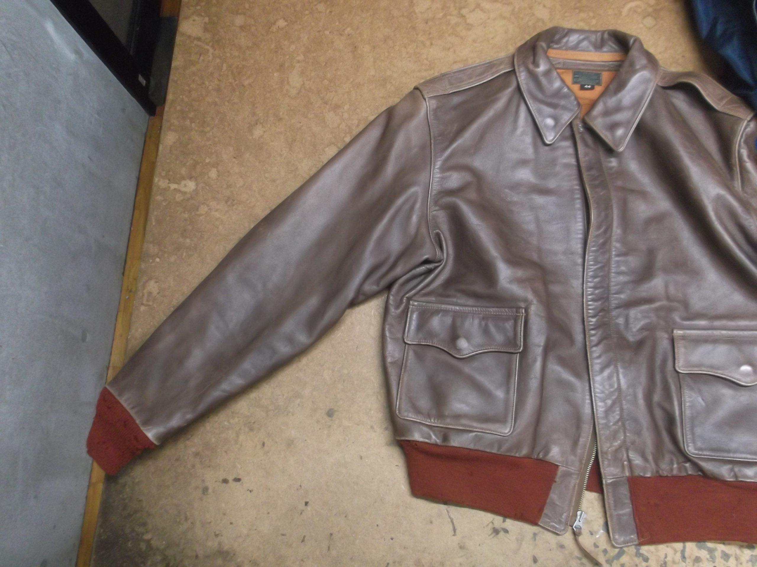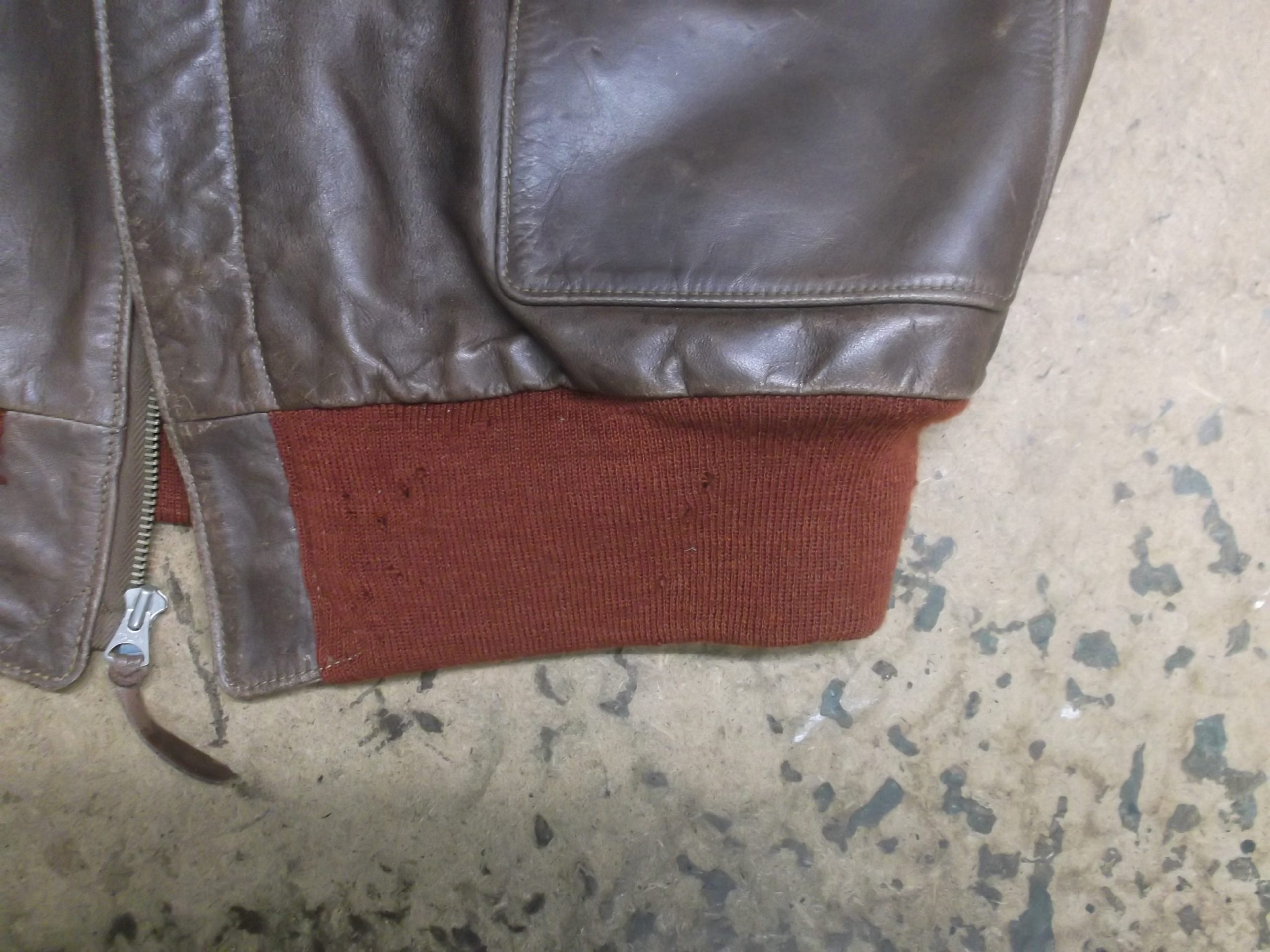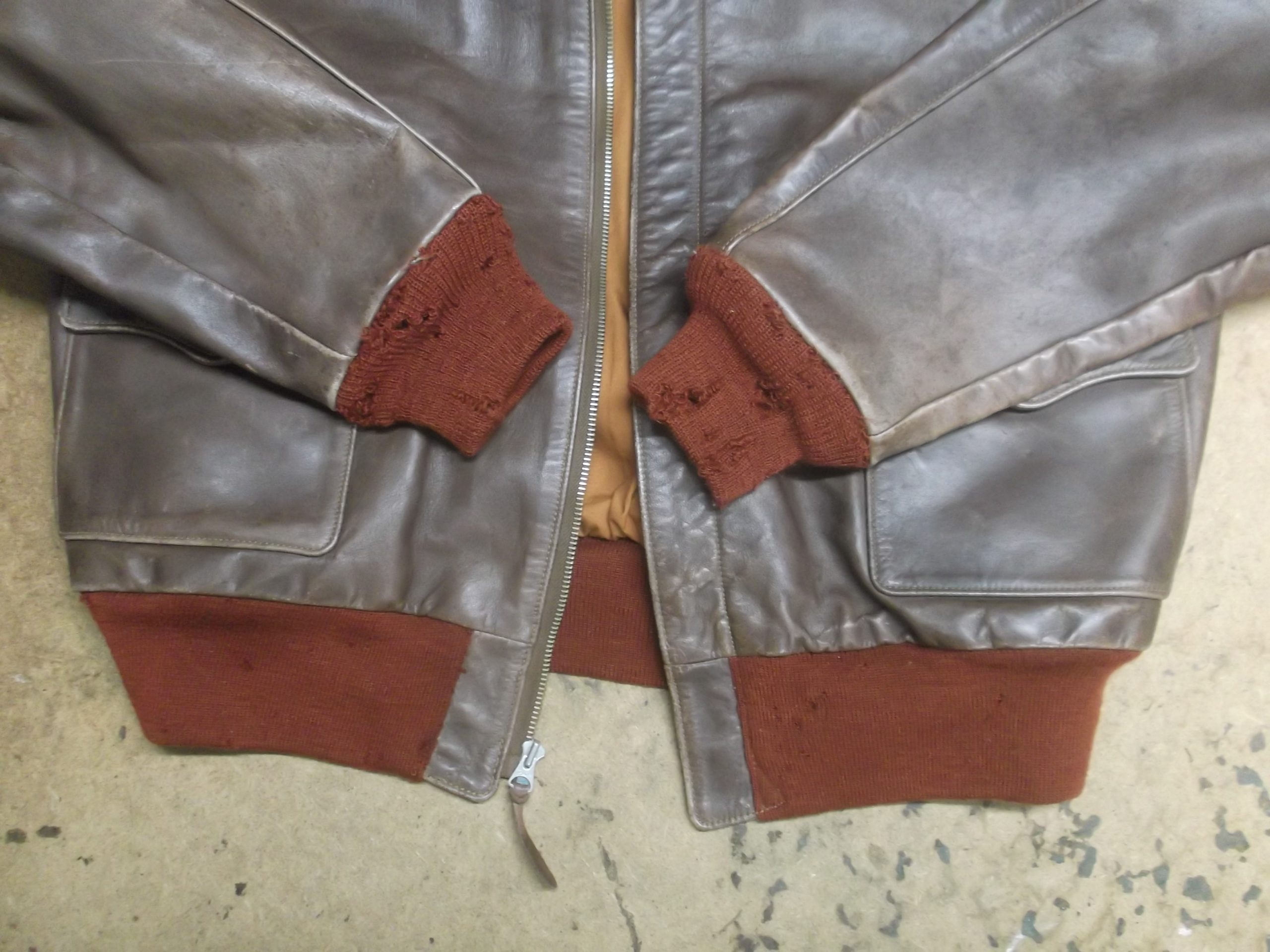 1枚目は茨城県からの郵送のお客さんの両袖と腰回りのリブニットと袖丈を短くしていく前のA-2フライトジャケットです。