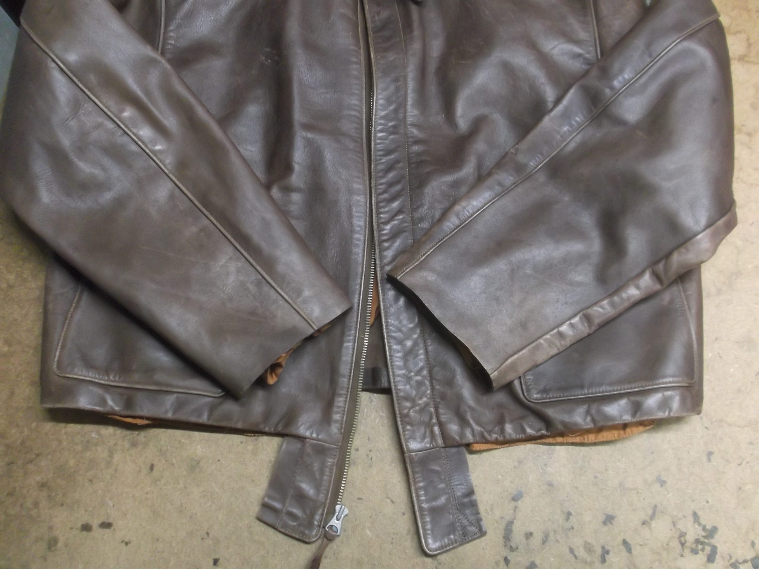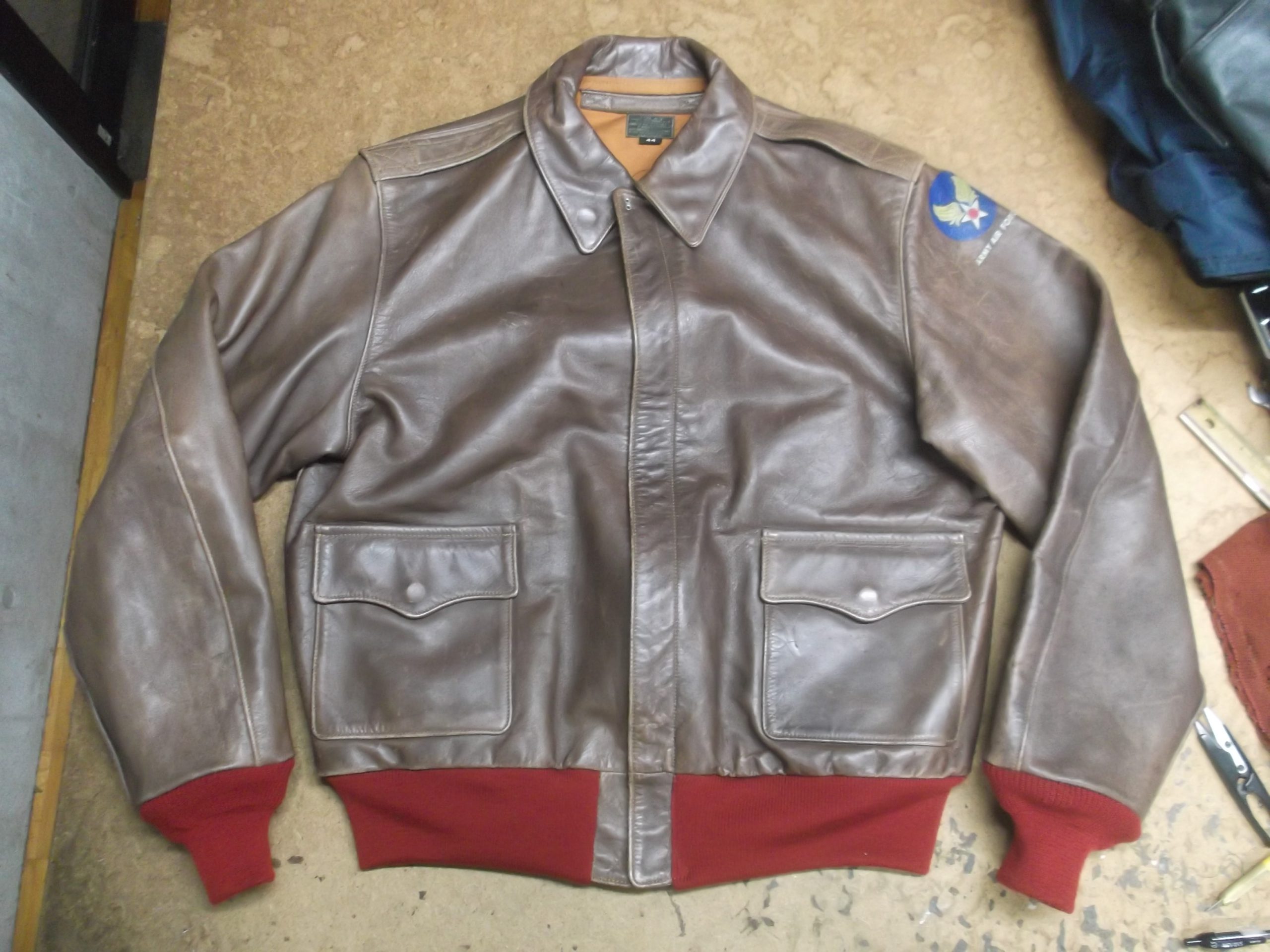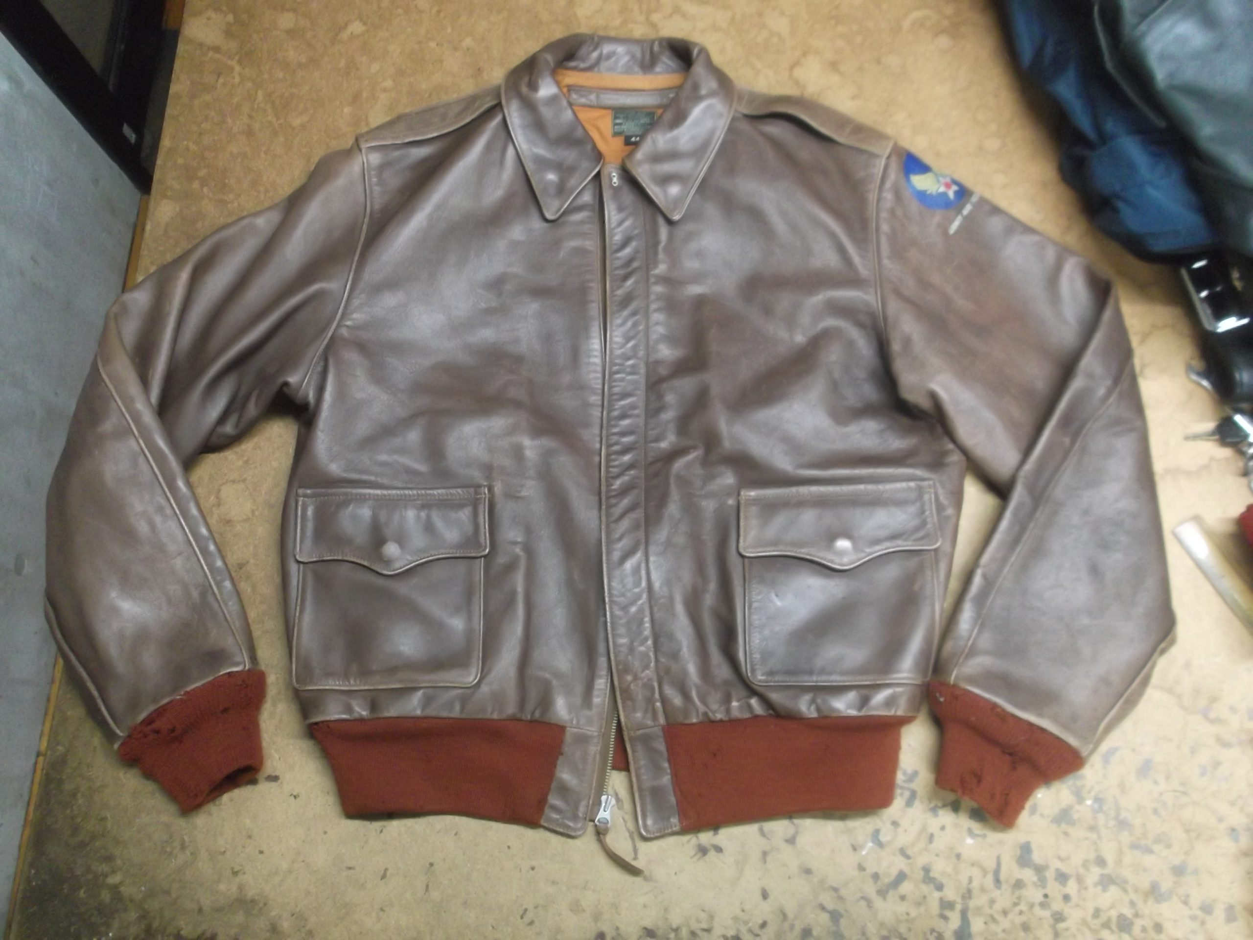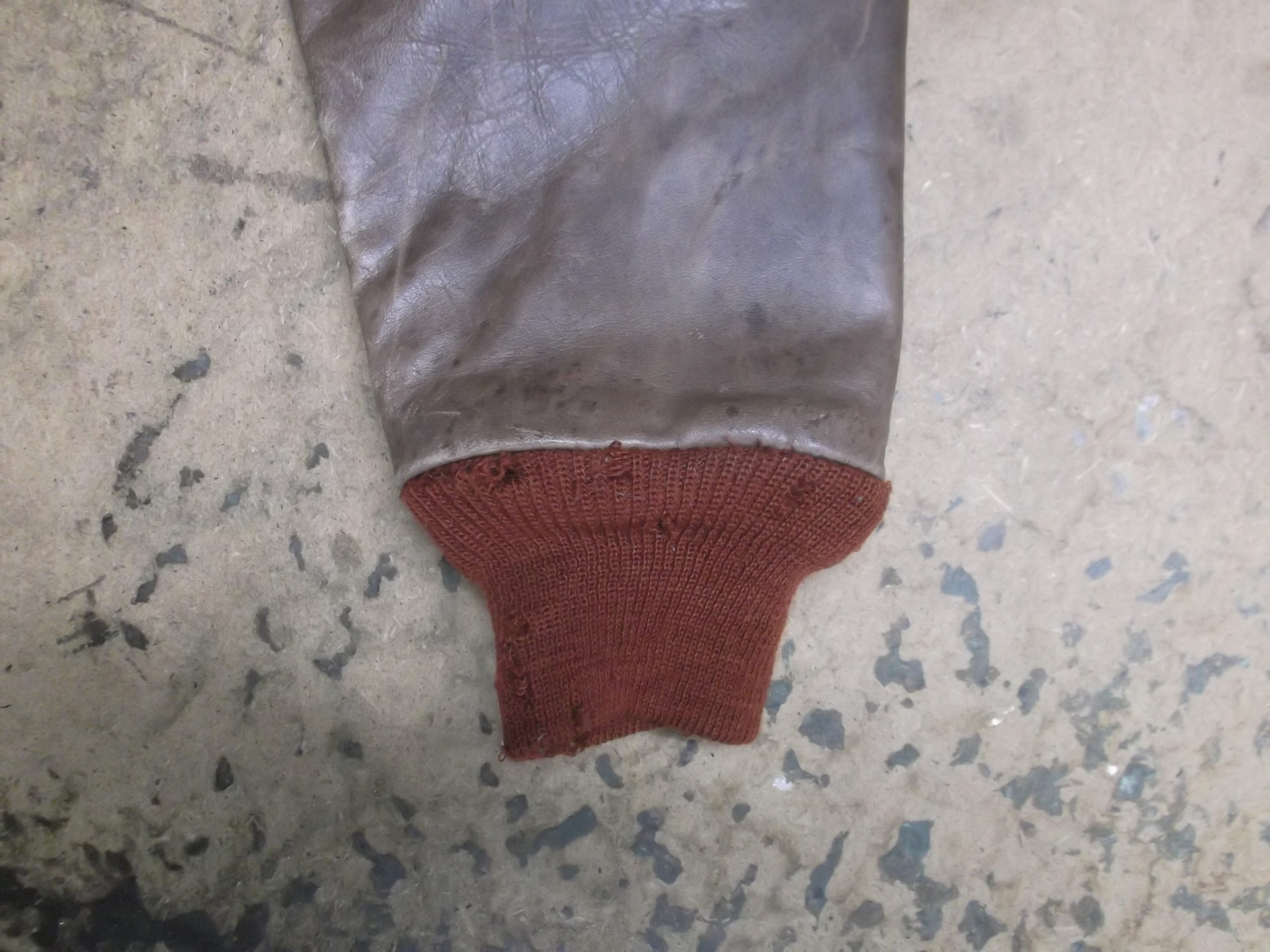 1枚目は茨城県からの郵送のお客さんの両袖と腰回りのリブニットと袖丈を短くしていく前のA-2フライトジャケットです。