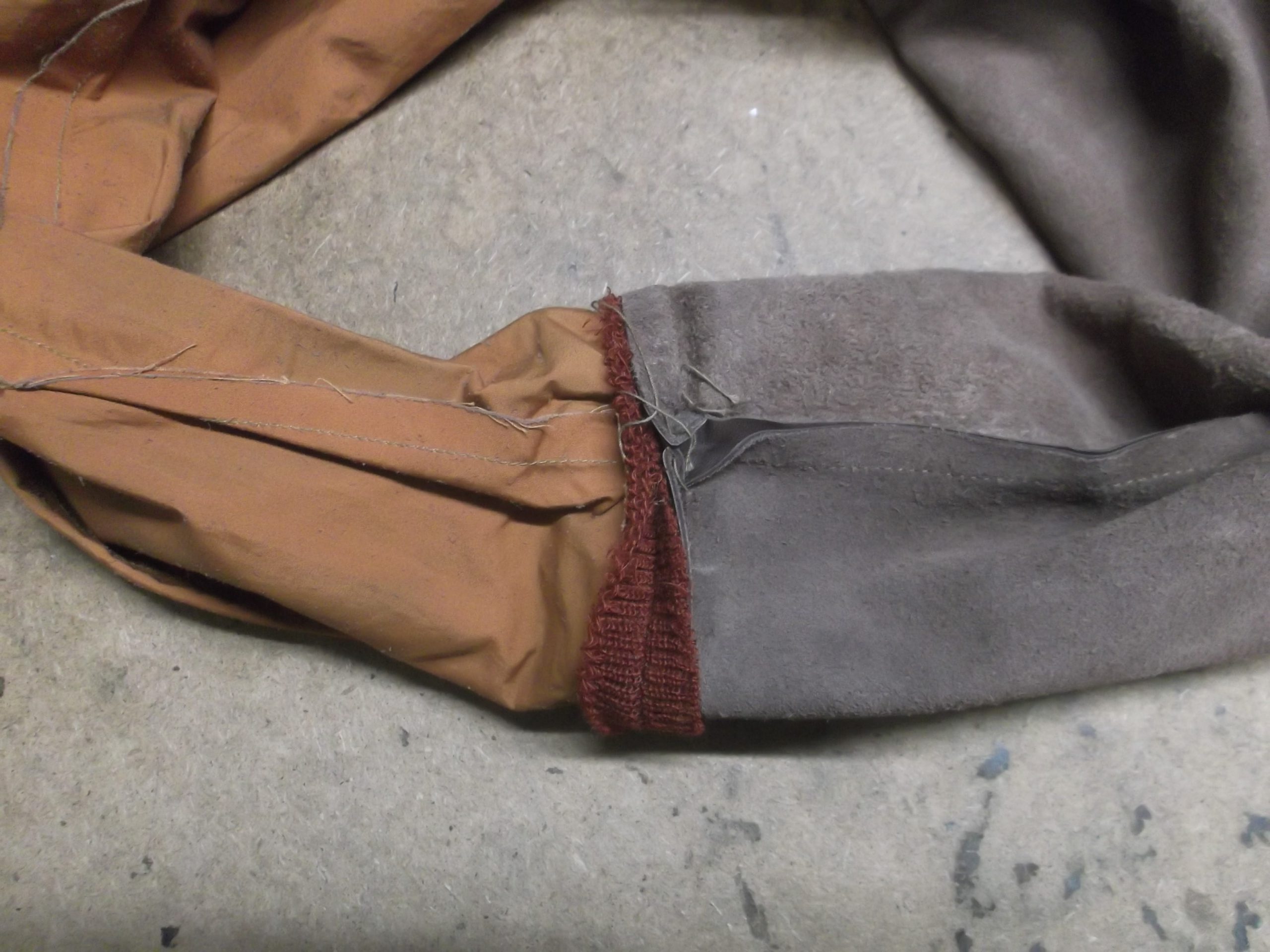 13枚目はA-2フライトジャケットの袖丈の処理とリブニットを取り外した後です。