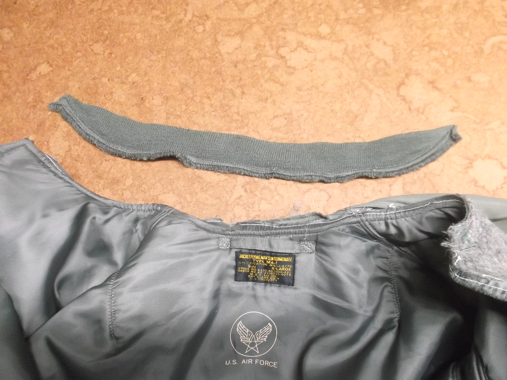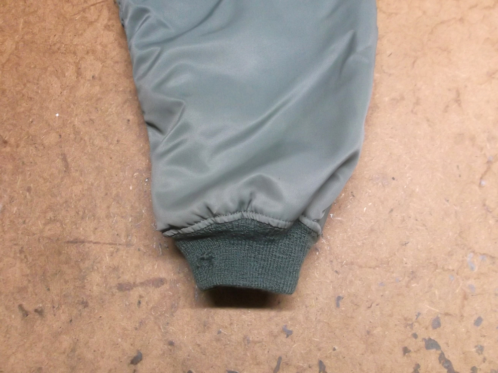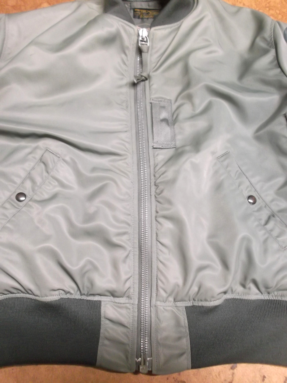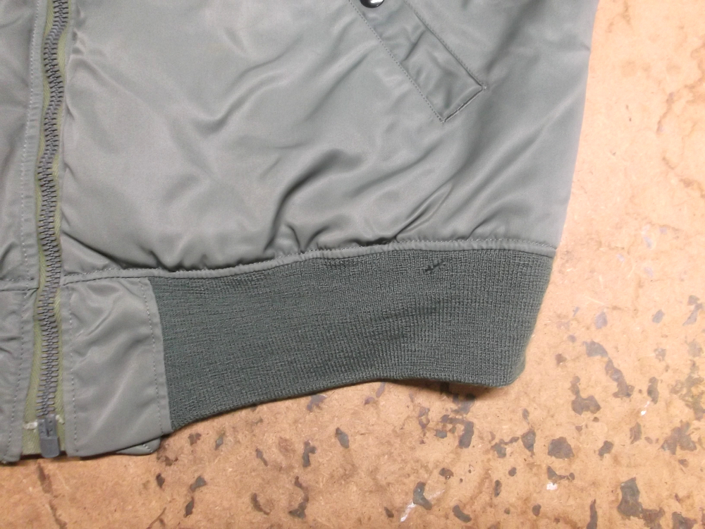 4枚目は元々MA-1フライトジャケットに付いてるジッパーと襟、袖、腰回りのリブニットの写真です。