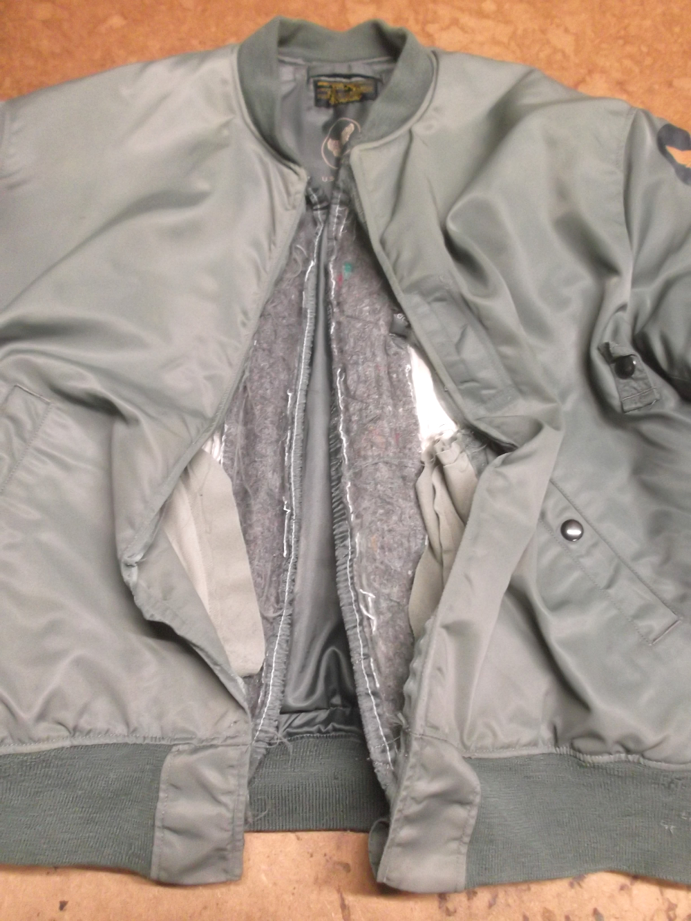 6枚目は元のジッパーを取り外したMA-1フライトジャケットです。