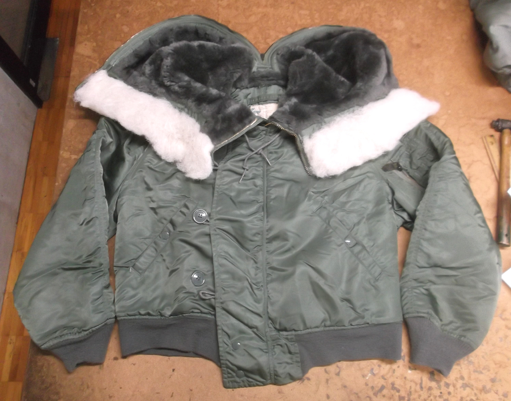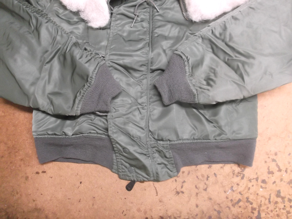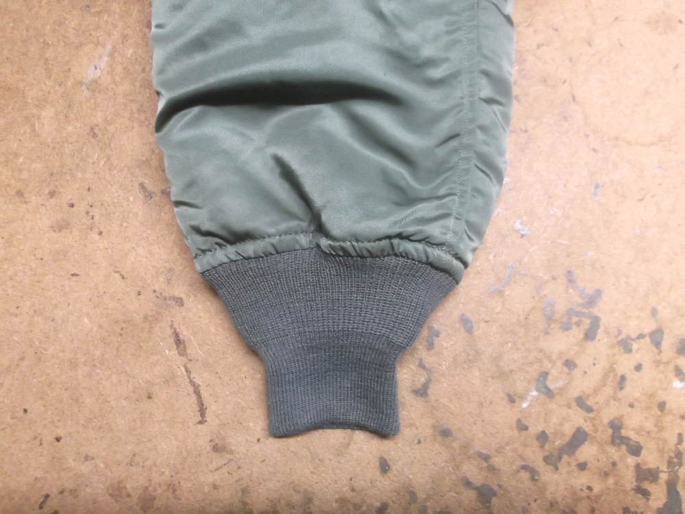 12枚目はN-2Bフライトジャケットの両袖と腰回りに新しいリブニットを取り付けた写真です。