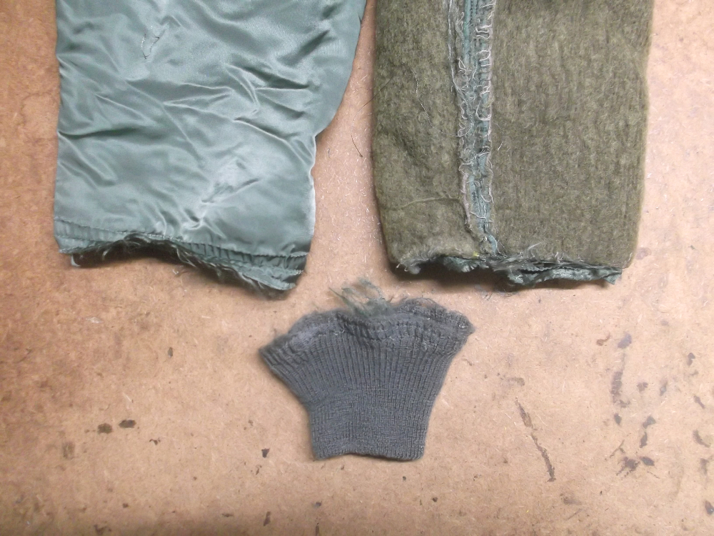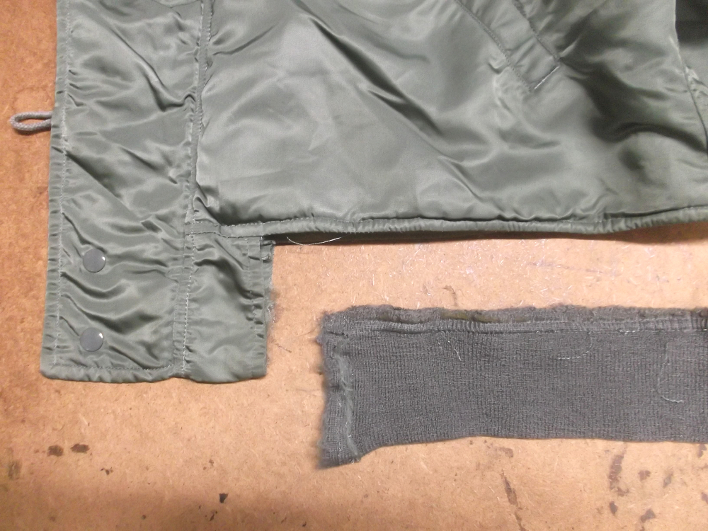両袖と腰回りの破れだしたN-2Bフライトジャケットのリブニットを新しいものに交換していきます。