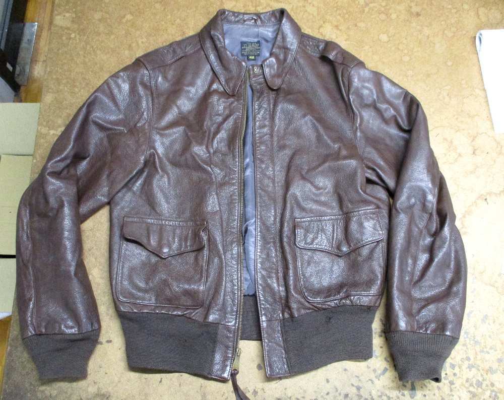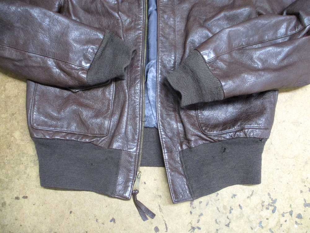 13枚目はA-2フライトジャケットに両袖と腰回りのリブニットを新しく取り付けた写真です。