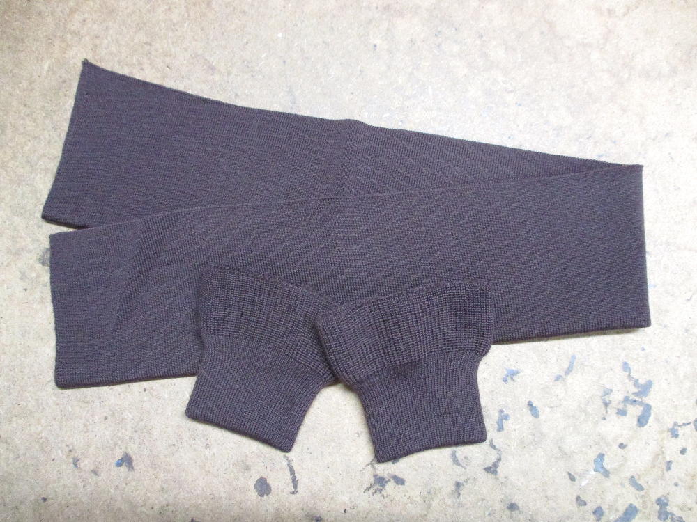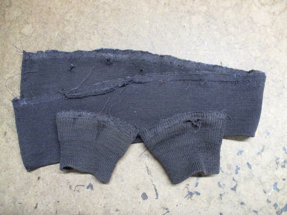 両袖と腰回りの破れだしたリブニットを新しいものに交換していきます。