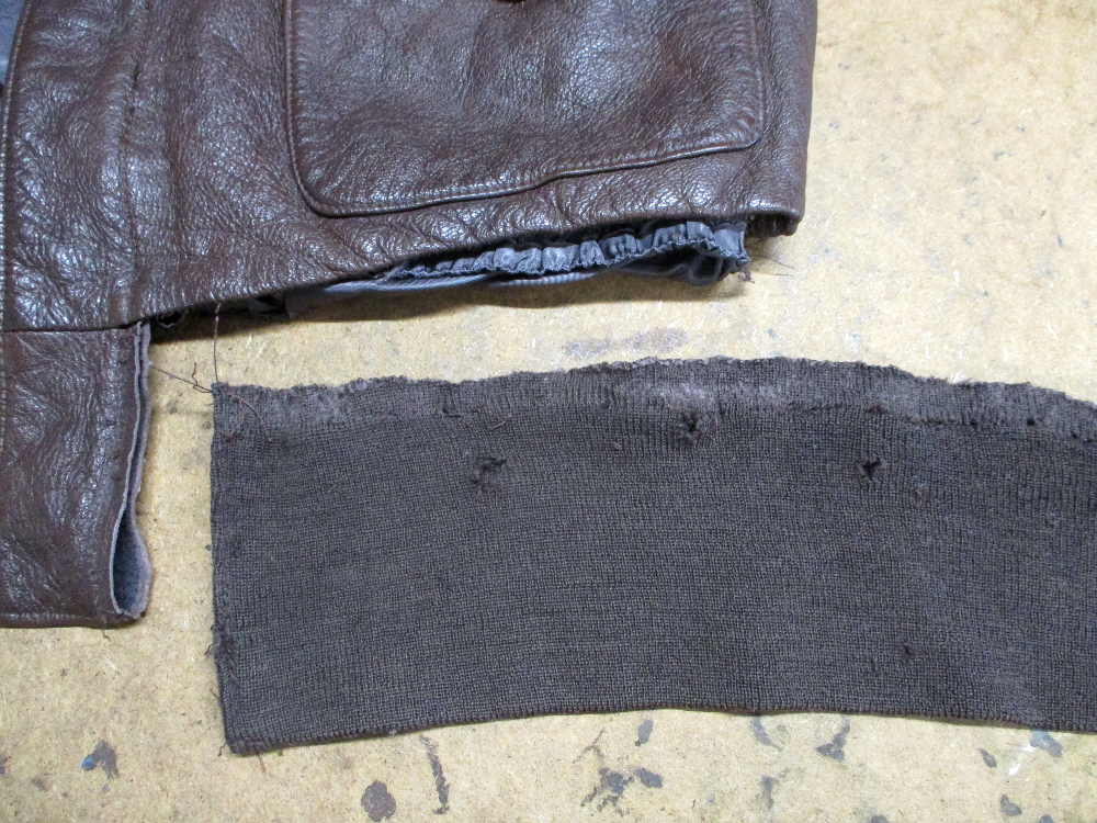 両袖と腰回りの破れだしたA-2フライトジャケットのリブニットを新しいものに交換