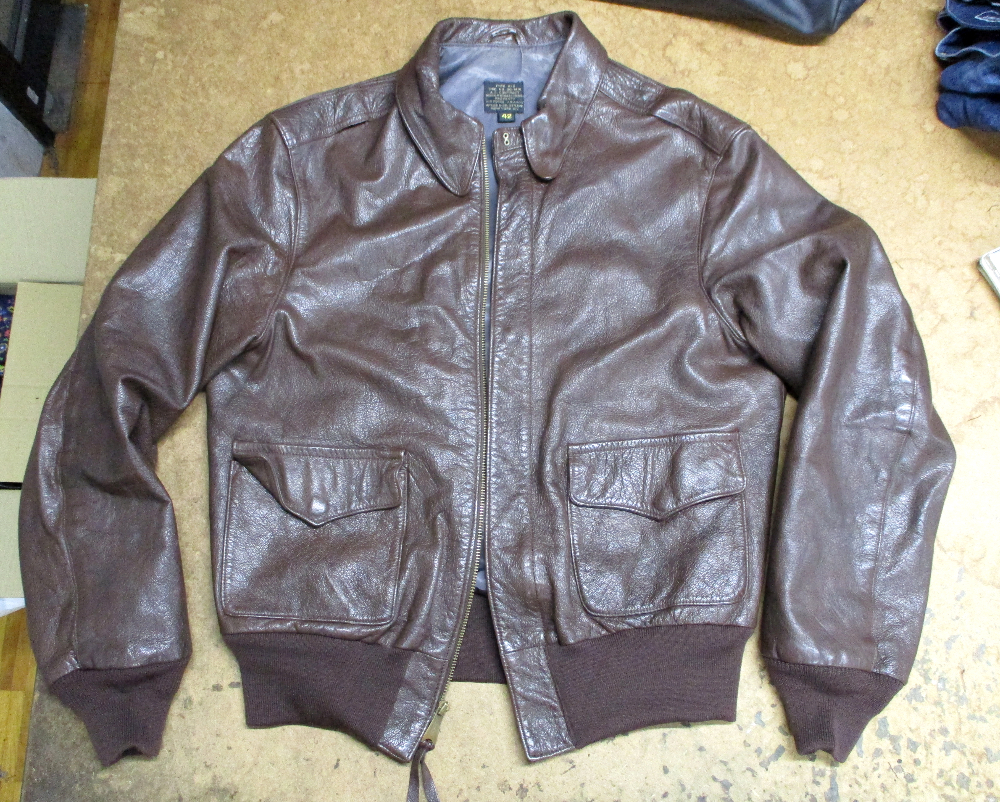 1枚目は長野県からの郵送のお客さんの両袖と腰回りを新しいリブニットに交換していく前のA-2フライトジャケットです。