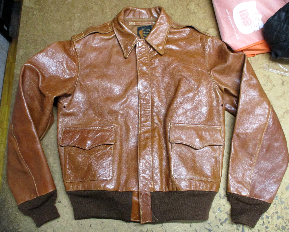 1枚目は京都府からの郵送のお客さんの両袖と腰回りを交換していく前のA-2フライトジャケットです。