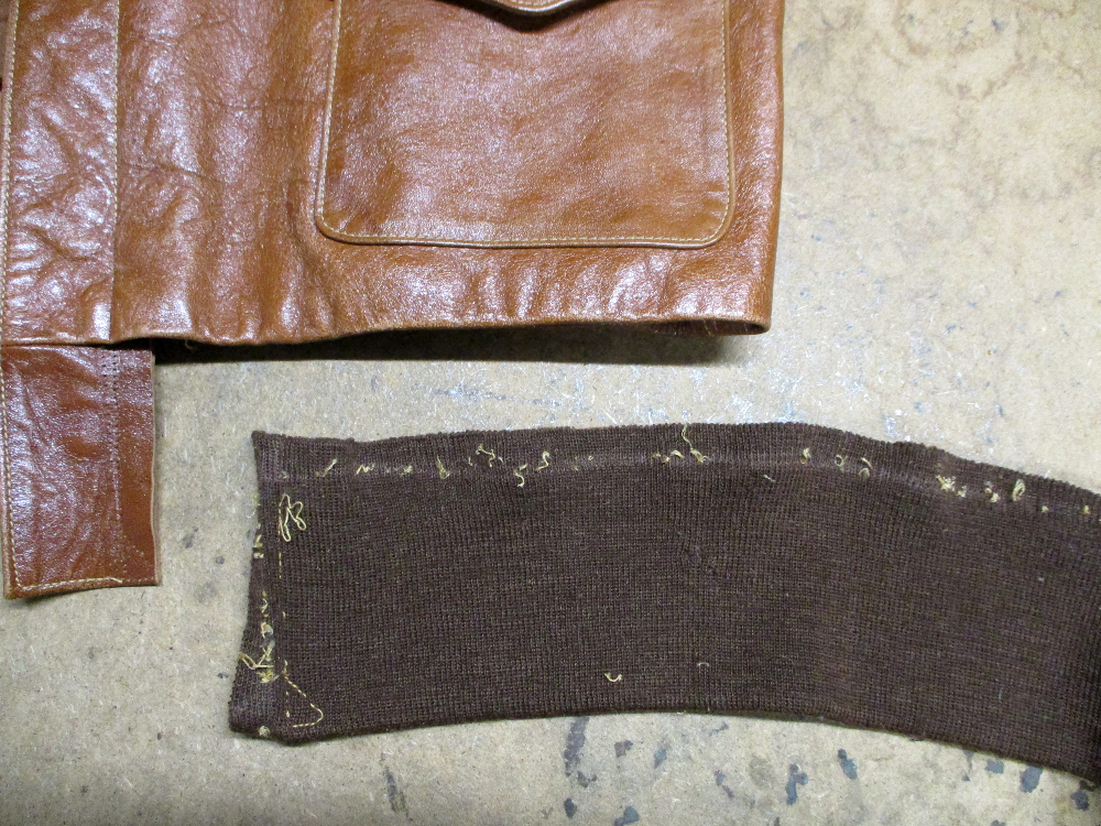 3枚目はA-2フライトジャケットに元々付いている両袖と腰回りのリブニットです。