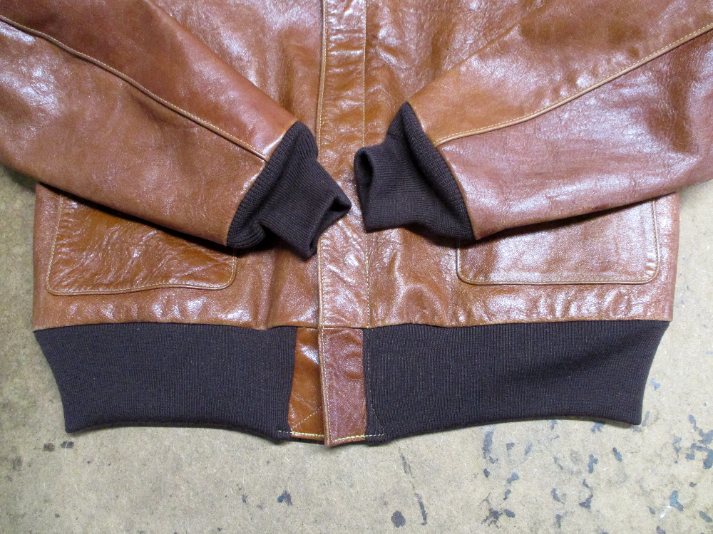 13枚目はA-2フライトジャケットに両袖と腰回りに新しく取り付けたリブニットの写真です。
