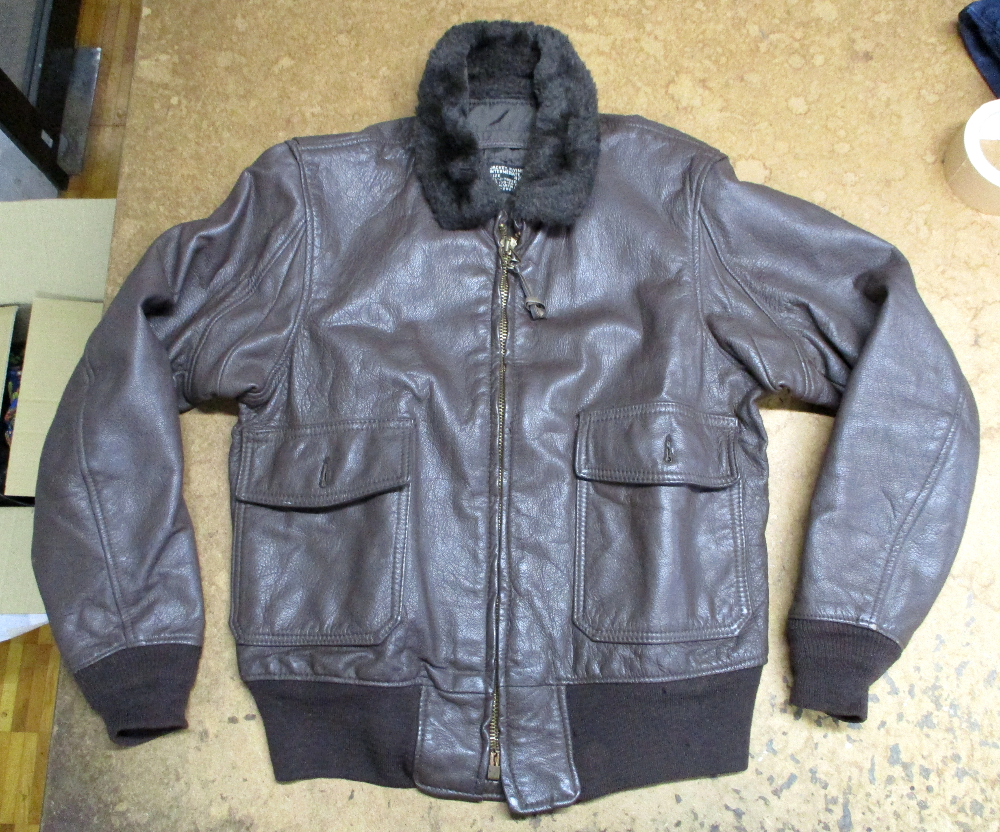 1枚目は神奈川県からの郵送のお客さんの両袖と腰回りのリブニットを交換していく前のG-1フライトジャケットです。