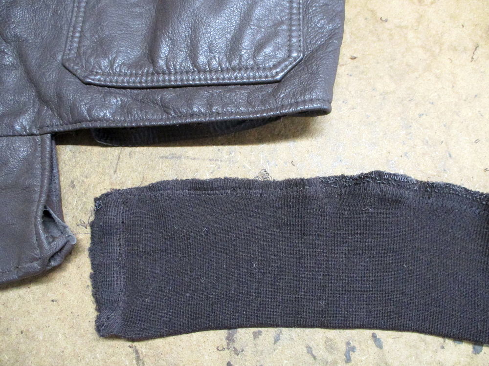 3枚目はG-1フライトジャケットに付いてる両袖と腰回りの破れだしたリブニットの写真です。