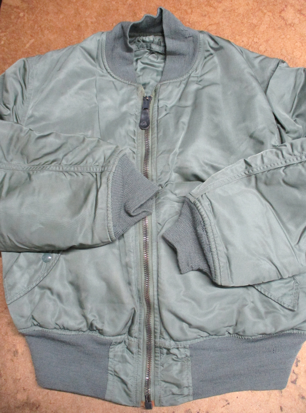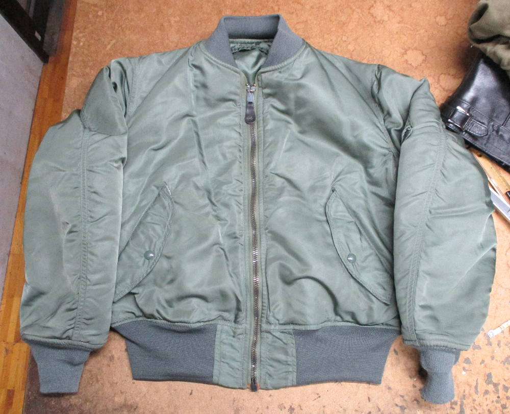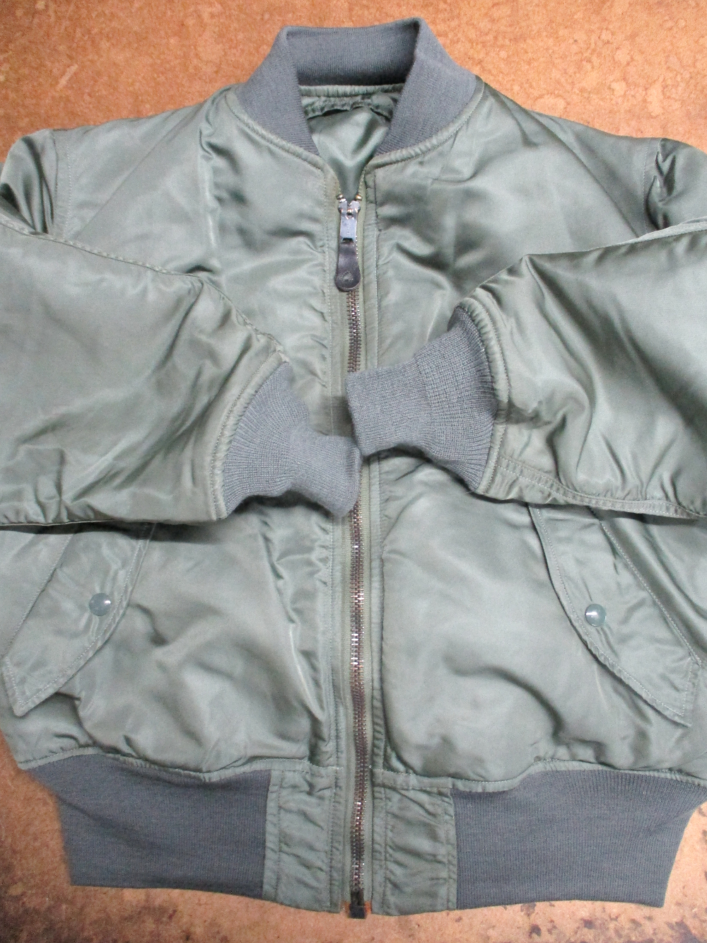 16枚目は襟、両袖、腰回りの新しくリブニットを取り付けたMA-1フライトジャケットです。