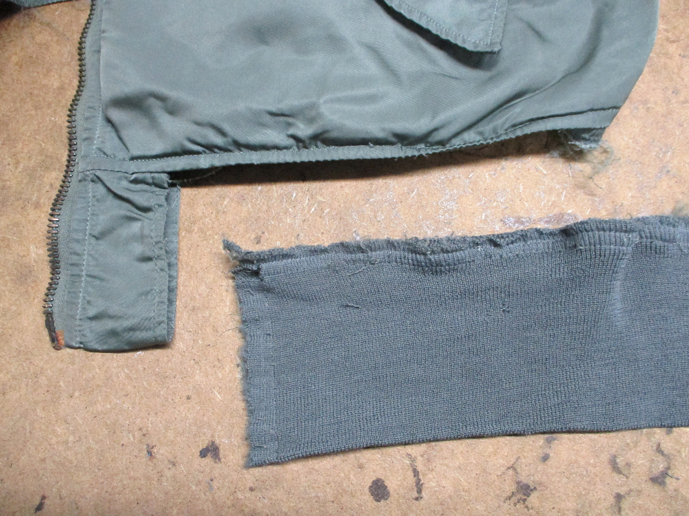 破れだしたB-15フライトジャケットのリブニットを新しいものに交換して…