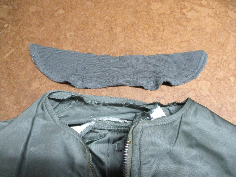 11枚目はMA-1フライトジャケットから襟、両袖、腰回りのリブニットを取り外した写真です。