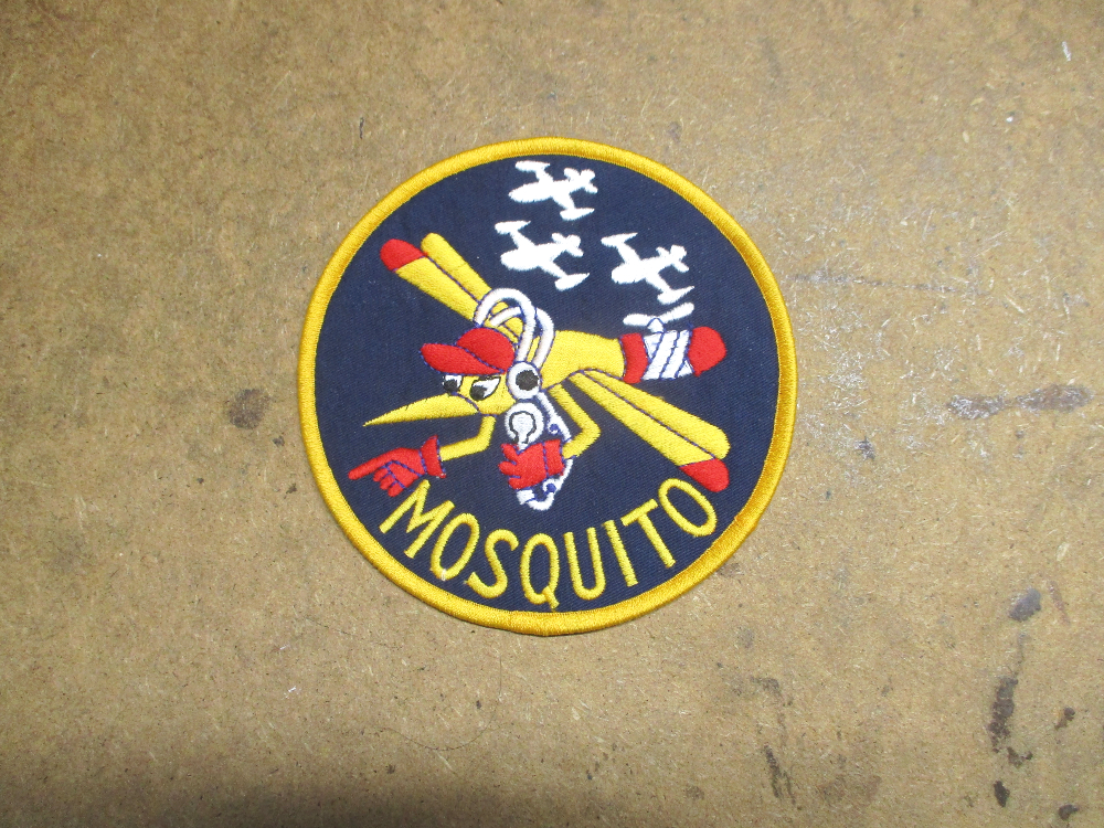 B-15フライトジャケットの胸にお客さんの好みのワッペンを取り付けていきます。
