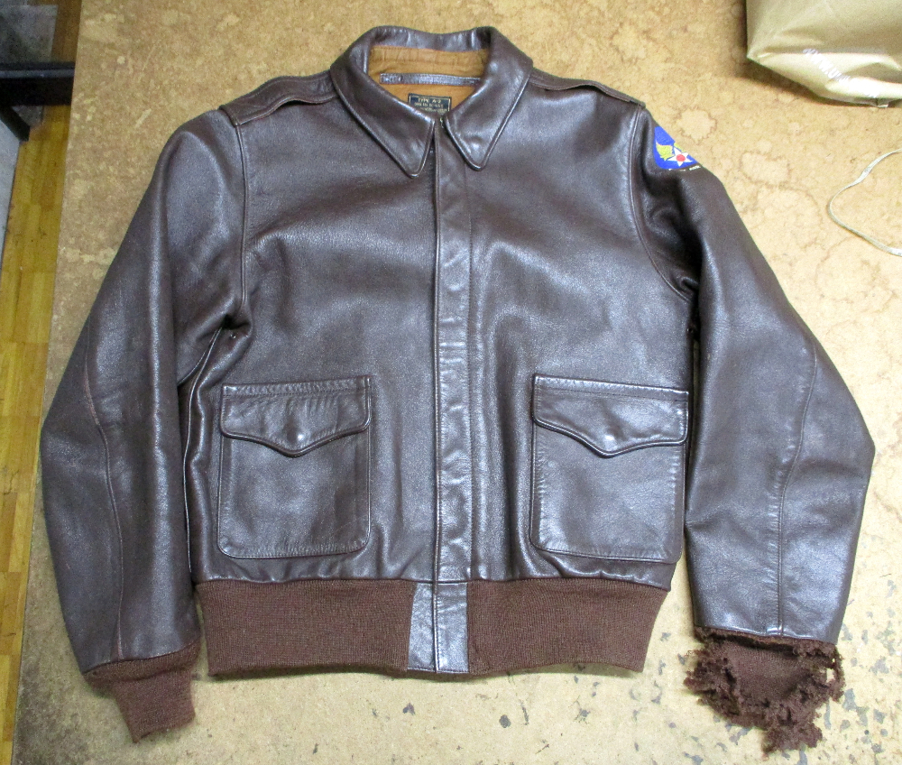 9枚目は両袖と腰回りのリブニットを取り外したA-2フライトジャケットです。