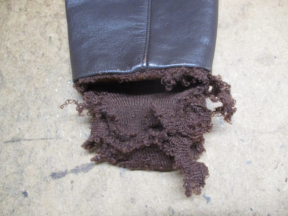 7枚目は反対側に引っくり返した袖のリブニットの縫い目付近の写真です。