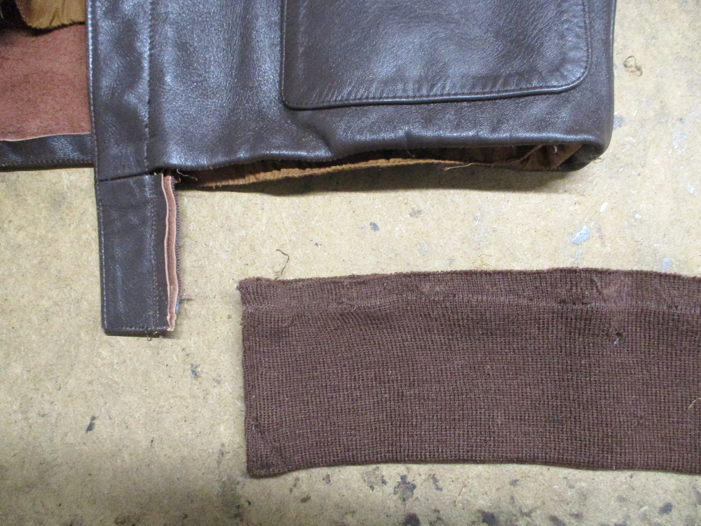 A-2フライトジャケットの両袖と腰回りの破れたリブニットを新しいものに交換