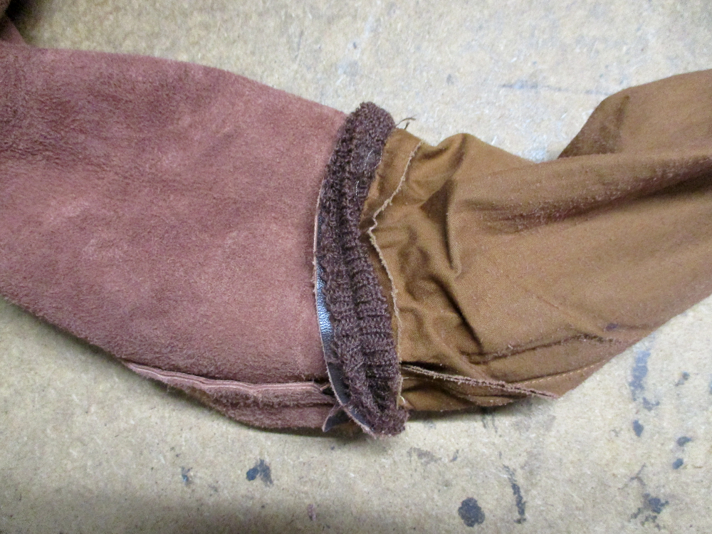 1枚目は宮城県からの郵送のお客さんのA-2フライトジャケットの両袖と腰回りのリブニットを新しいものに交換していきます。