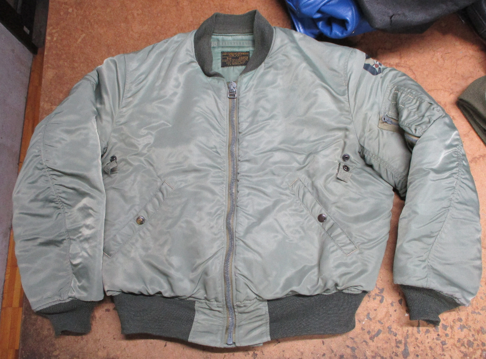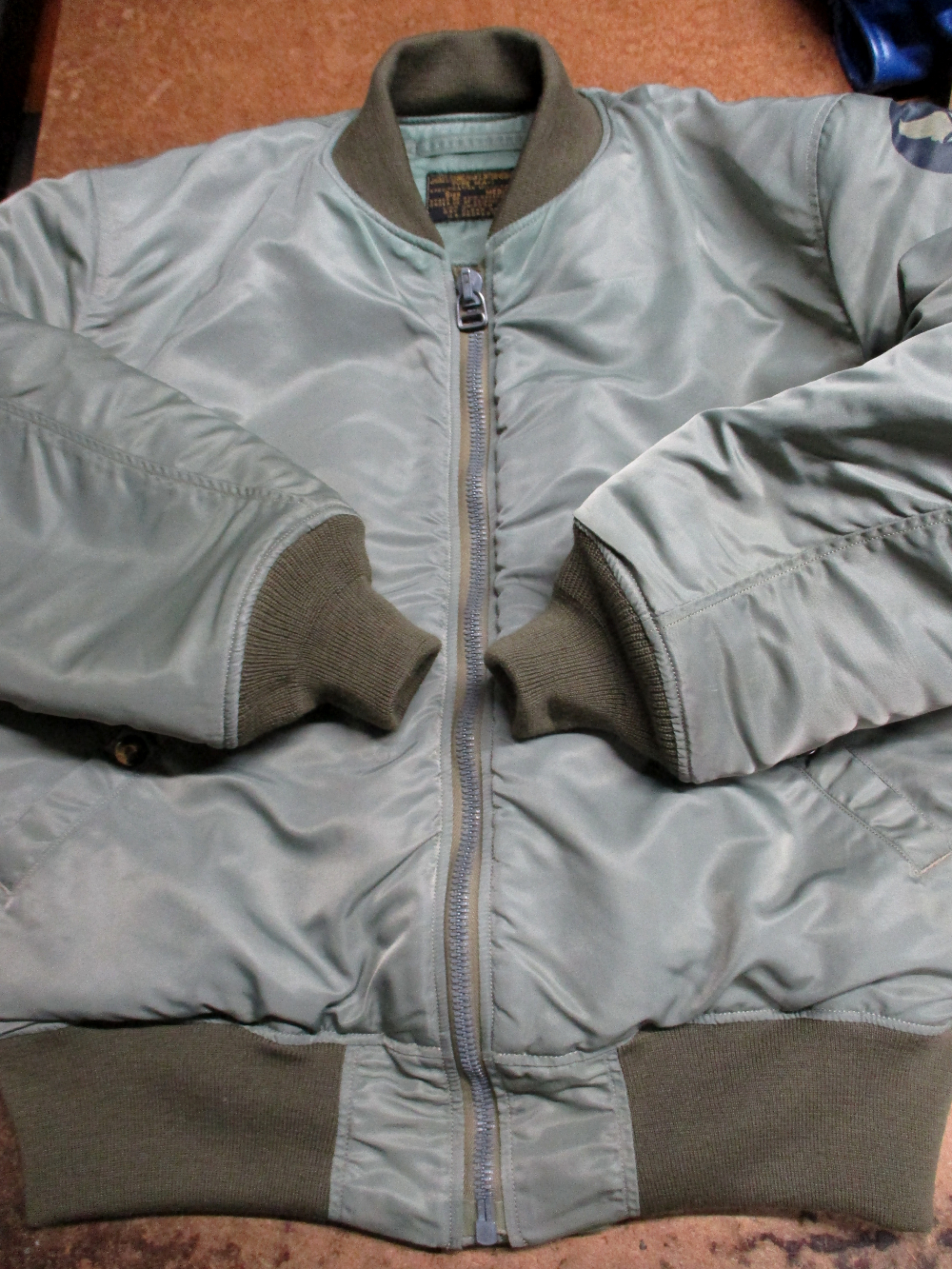 3枚目は取り外していく襟、両袖、腰回りのリブニットのMA-1の写真です。