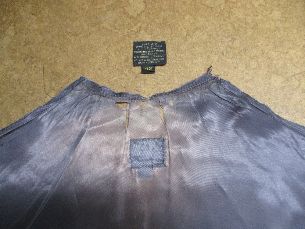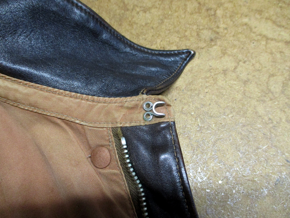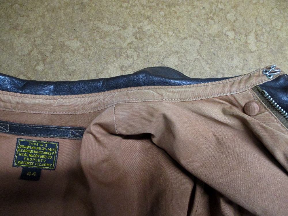 4枚目はA-2フライトジャケットでも交換が出来るタイプの襟裏の裏地の写真です。